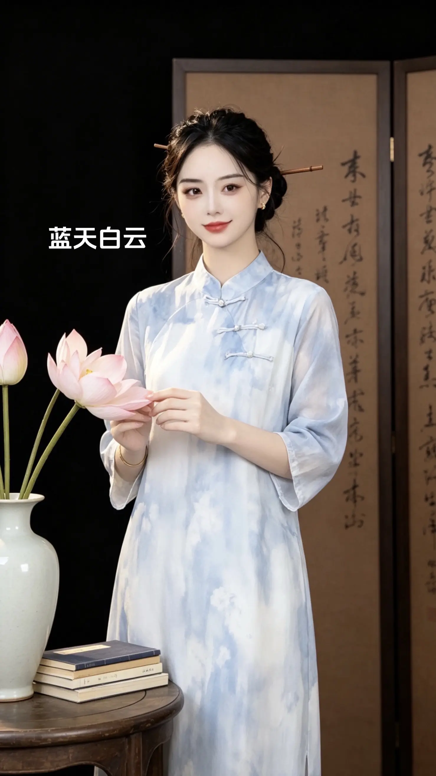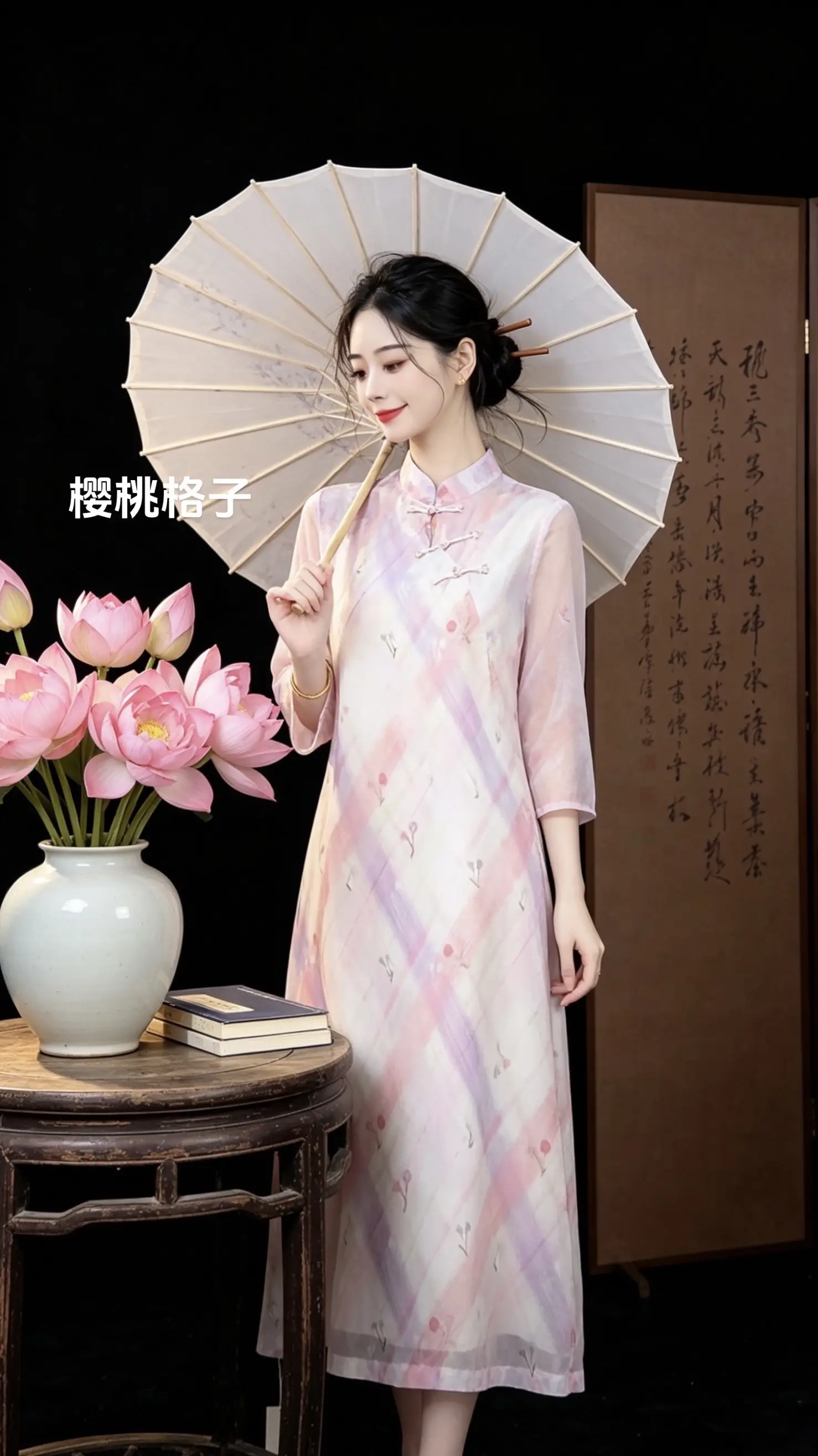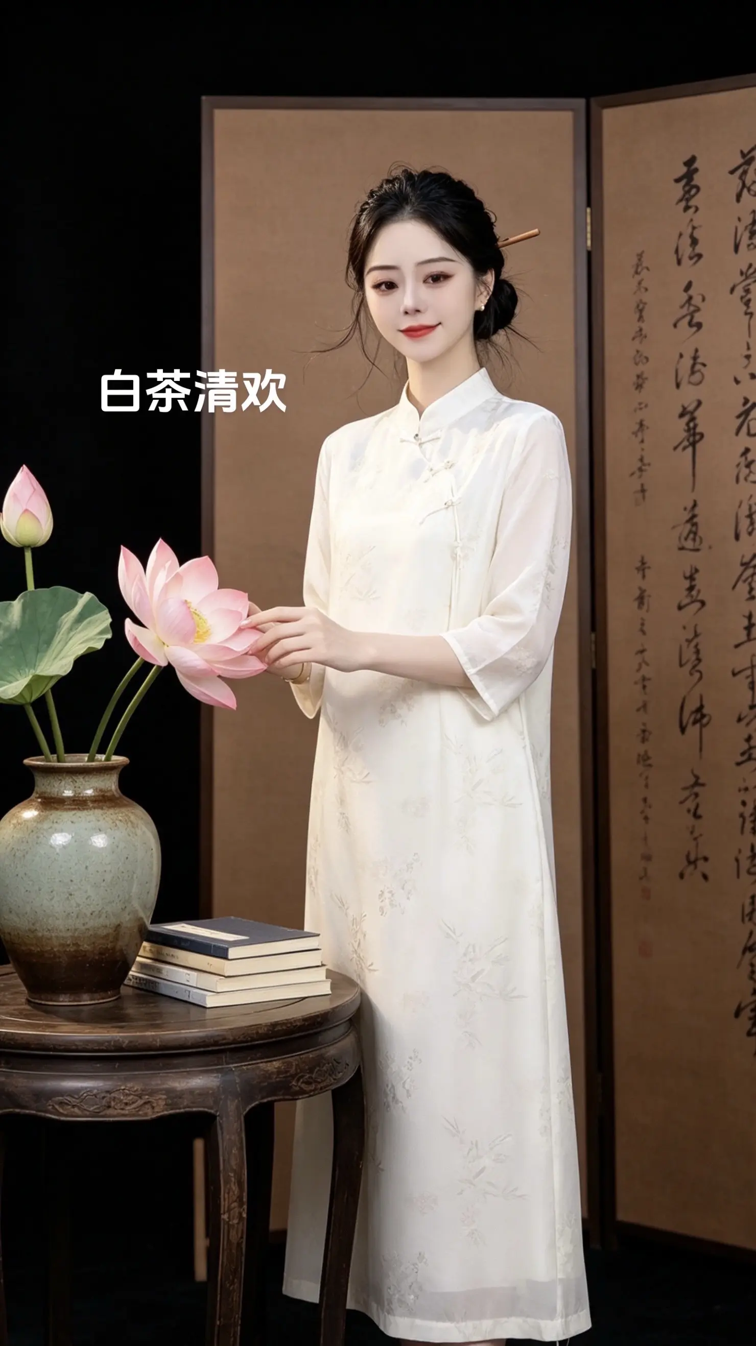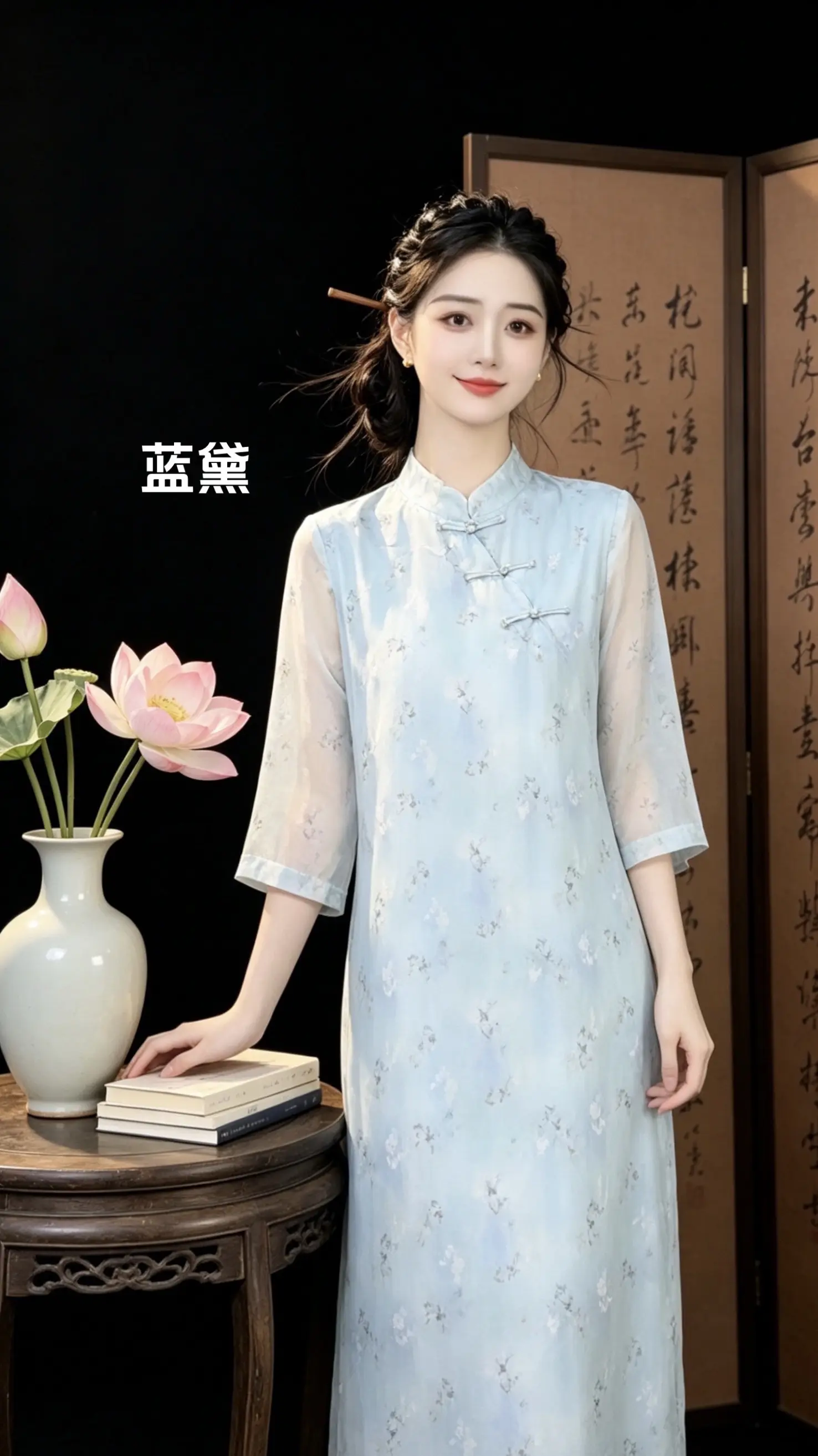 优雅旗袍,绿意盎然,清新自然,尽显东方韵味。