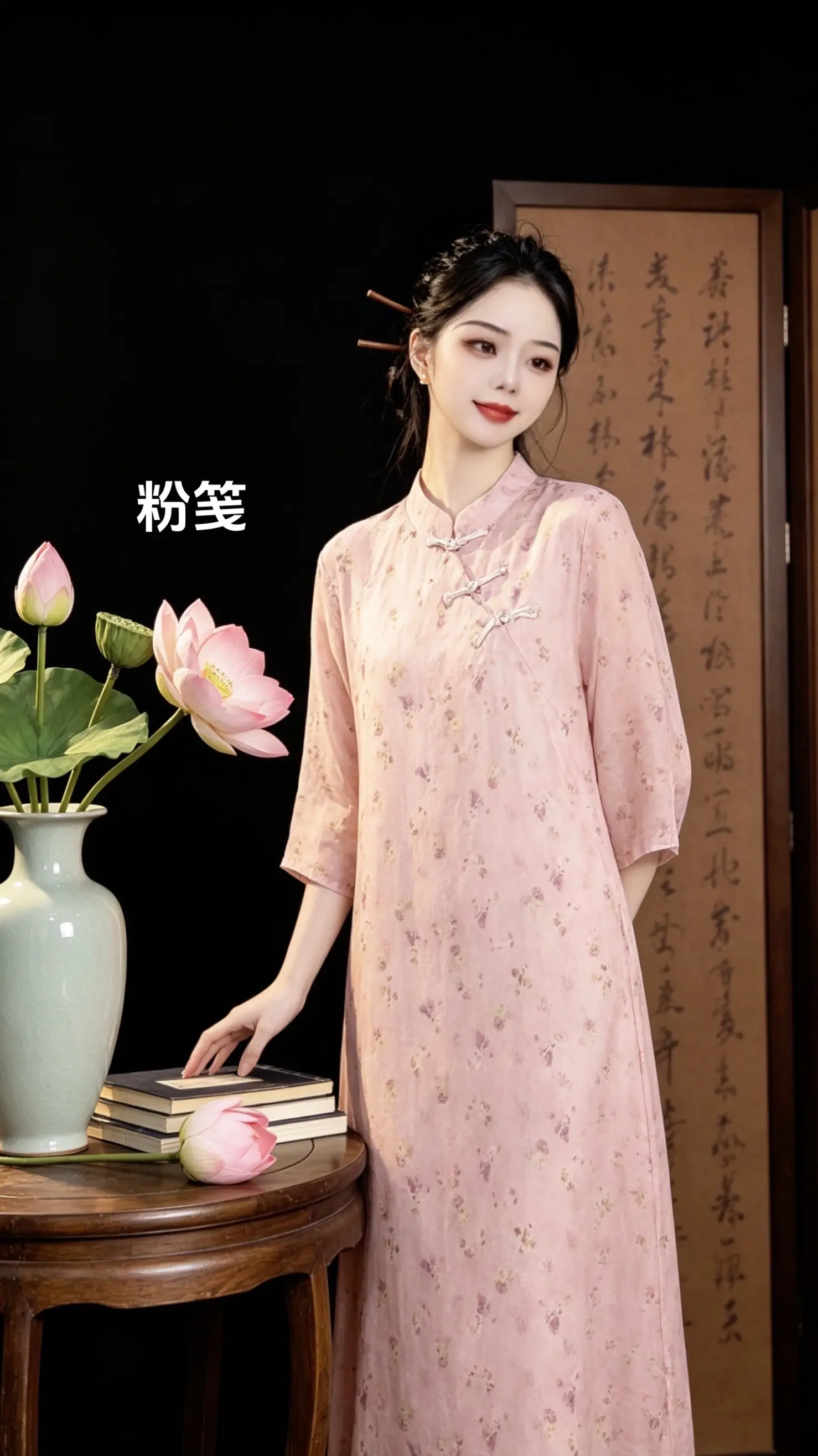 塞鸿秋·改良旗袍韵旗袍巧塑玲珑貌,高领盘扣修颈妙。纤腰束得春风俏,曲线婉