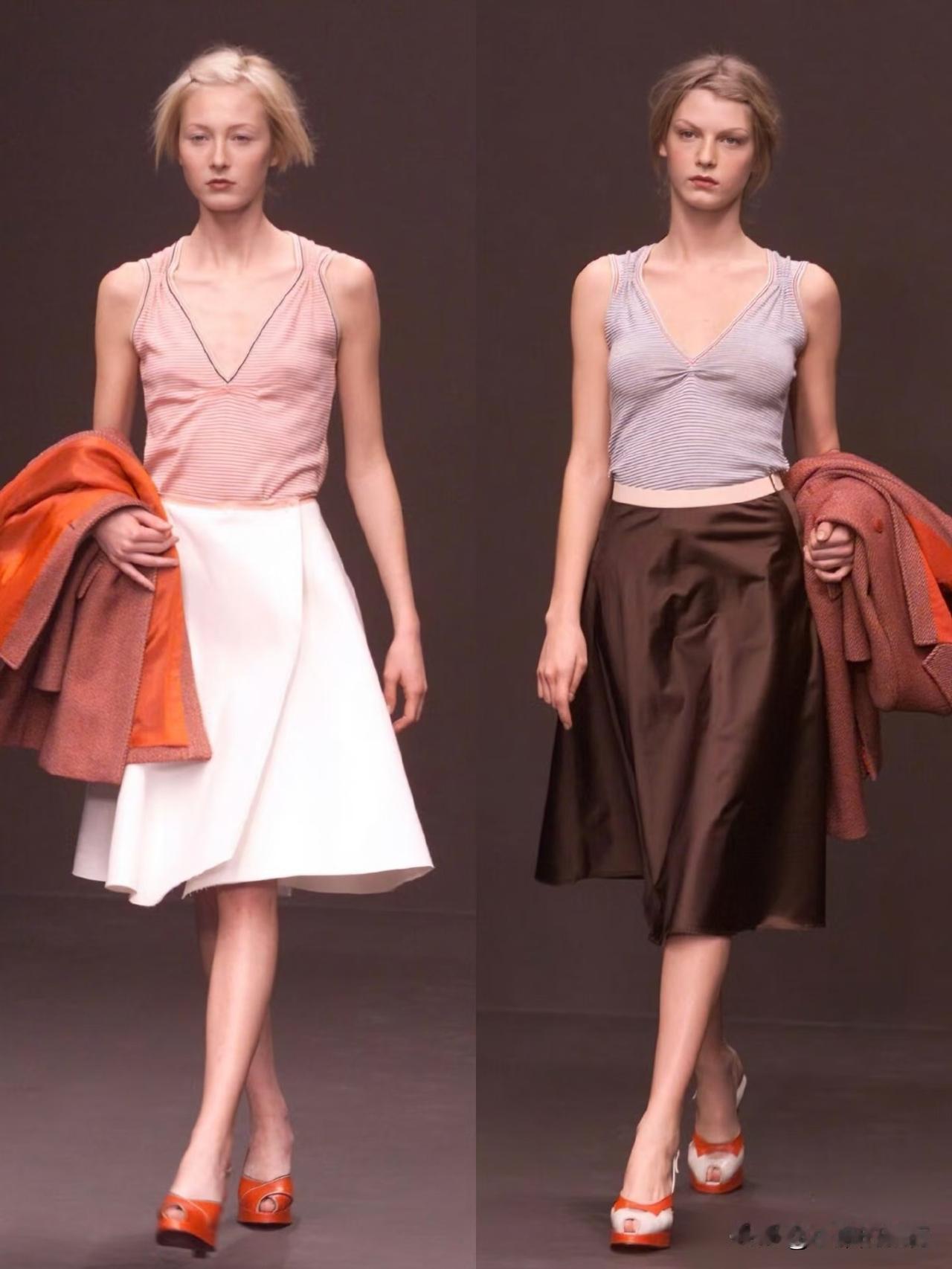 美搭社:秀场回溯|Miu Miu 2000秋冬,永不褪色的千禧温柔 时隔二十余年,再看Miu Miu 2000秋冬大秀,依旧能被这份复古氛围感狠狠打动。 低饱和豆沙橘棕毛呢大衣,暗藏一抹明艳橙调内衬,利落西装剪裁温柔又有力量。软糯针织、垂坠缎面、休闲短裤随性组合,把少女慵懒与知性贵气完美平衡。