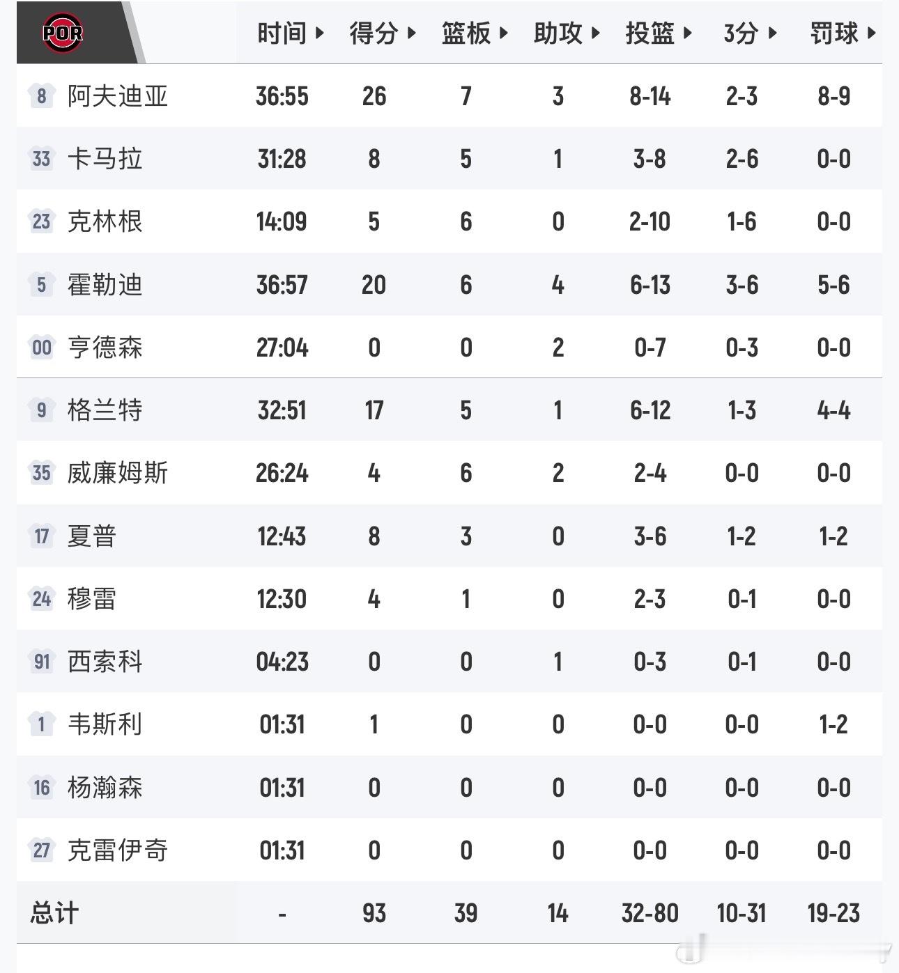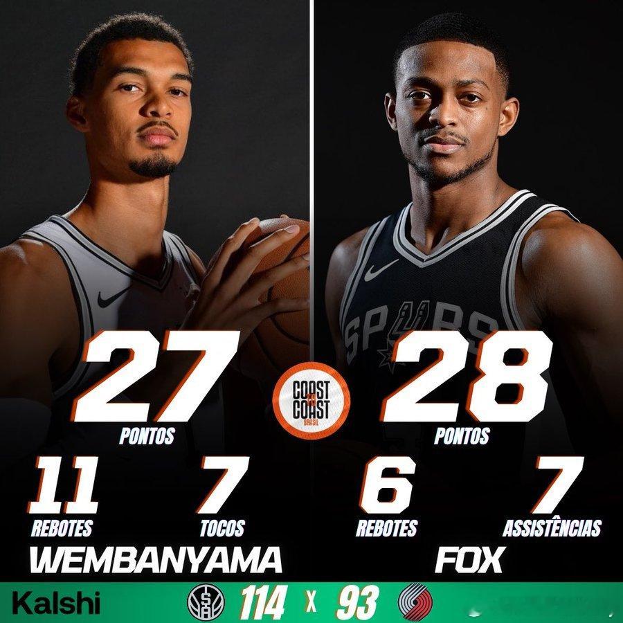 文班27分11篮板4抢断7盖帽,福克斯28分6篮板7助攻阿夫迪亚26分7篮板,霍勒迪20分6篮板4助攻