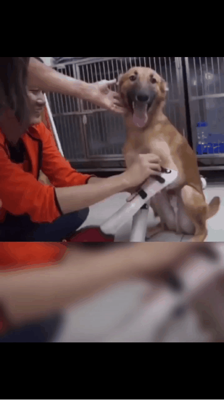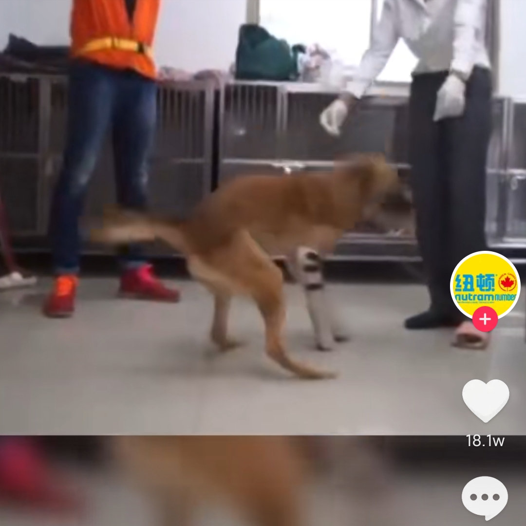 当一只残疾的狗狗第一次安装上假肢的时候,它的情绪显然和人差不了多少,它先尝试着使用假肢在地面上站立了起来,紧跟着发现自己可以和普通的狗狗一样蹦蹦跳跳,它的前半身不会再次塌陷下去,不会再磕到自己的嘴巴,不会再和以前一样强撑着后腿站立起来,它冲着室内的每一个人都发出了喜悦的通告,它经过每一个人,它没有表情,但是它喜悦的样子任由谁都是能看的到,最后,它亲吻了对着它拍照的摄像师。
