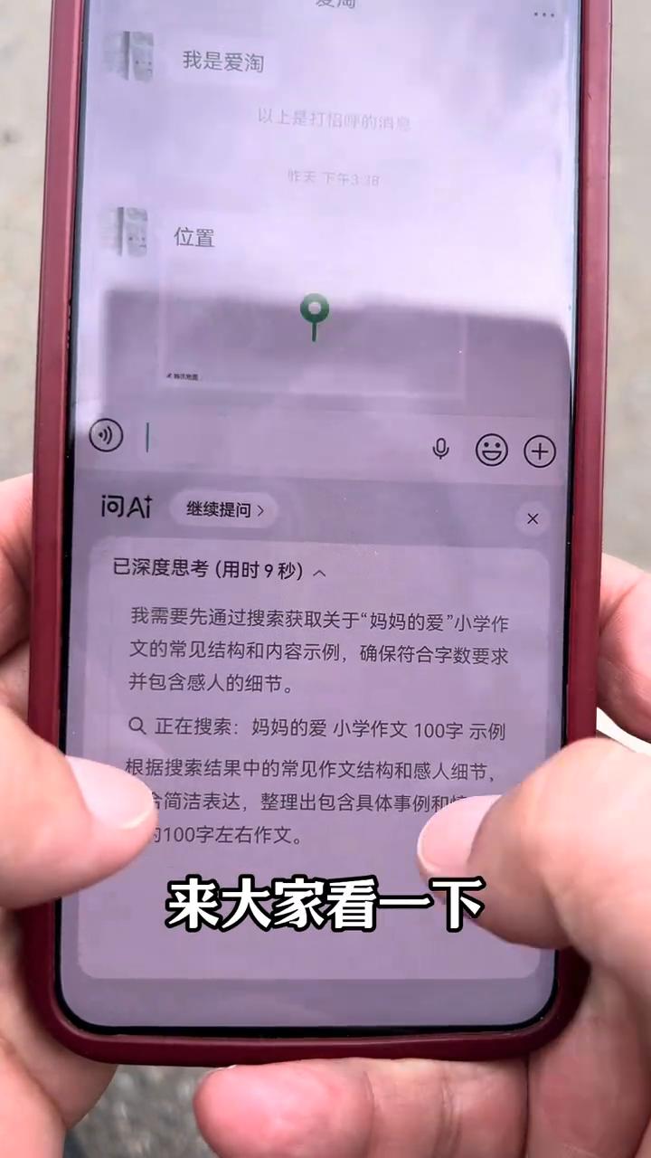 微信4月底重磅升级,新推出的AI功能太强大。 微信4月底重磅升级,新推出的四大功能直接让老铁们全傻眼了。这一次更新直接把AI全都包含了,其中像这种工作、生活、创作应有尽有,效率能直接拉满,直接做到一个应用就能闯天下,超级全面。接下来老铁们千万不要眨眼,我给大家演示看视频,收藏好千万不要找不到了。 ·朋友们把自己的微信打开,随便找一个跟朋友的对话框就行了。点开输入框的时候会看到一个绿色图标。当然有些朋友说找不到绿色图标是什么意思?可能是微信没有更新或者其他原因导致的。没关系,如果没有的朋友往后看,后面讲一个通用的方法,比这个还要好用。 ·点开绿色图标,这里有个问AI,点开之后输入想问的问题,在这写着可以问他什么?比如今天的天气、后天是初几、礼拜几等等都可以去问,让他帮我们做一个小学作文等等都行。 ·给大家举个例子,帮我写一篇小学作文,题目叫妈妈的爱,要求100个字左右。这就是标题,说完之后点击回车,不要点错回车,有的是直接发送出去了,发完之后稍等几秒钟,它自动的写出来。这个就非常的好用了,给孩子做一个参考是不是非常好? ·当然它还可以直接保存到相册,作为一张图片直接保存,还可以直接发送图片,也可以继续提问都行。这个就是它的功能,当然问他今天的天气怎么样?未来一周的天气有没有什么变化?我想出去旅游等等都可以。 ·有些朋友找不到怎么办?找不到的朋友点这里输入框长按会弹出一个井号键,接下来后方跟上灵感吧三个字发送出去,从这里可以直接点进去的。点进来之后。 ·第一个,又叫这个了,不要去不要选错,选择它进来之后稍等3秒钟,让它自动跳过这个页面就可以了,这里跳成0,自动跳过。 ·这里面的功能相当多,给大家说一下关于工作生活的,还有创作类的,点击工作,这里有很多,像这种工作总结、演讲稿、PPT大纲等等都可以用。 怎么使用?给大家举几个例子。 ·工作总结,点开之后,比如说老板让你写,就在这输入你的职业,比如说你是会计、老师、护士、医生、工人、建筑师等等都可以,那就选一个比较接地气的,快就好了。 ·工作内容,这里就选择季度报告,填好内容之后,下方的字数1000个字,500个字都行,填好之后点击生成。 大家看这个速度,2秒钟就能给你写出来,速度相当快,它比你自己要写可能要快几十倍,因为自己写三五天不一定写的这么好。 ·写好之后,不满意重新生成,满意复制文本保存到手机里进行修改,然后再进行打印,它就是你的工作报告了,明白吧?非常简单,而且实用。大家学会这个流程之后,一定要懂得举一反三。 ·下方这里还有什么述职报告、演讲稿等等,比如说老板让你写个演讲稿,给大家举个例子,老板让你在公司大会上发表一篇获奖感言,那么发言场合就是公司大会,填好这里内容描述关键词,这里就是获奖感言,你看简单吧?只要你明白了这个逻辑,后期你怎么写都非常简单。 ·点击生成,你写什么类型的演讲稿都可以用它,非常方便的一种操作。写完之后复制文本保存到手机,修改打印就可以了。 这是工作类型的,还有下方的PPT大纲,使用方法跟刚才一样,懂得举一反三就行。还有这种生活类的,点开之后往下滑,下方有这种生活小妙招。生活顾问大厨私房菜。给大家举几个简单的例子,比如说你想做菜了,你就用这个大厨私房菜,不需要你打任何一个字,直接在这按住话筒,直接对他说话就行。说什么?就直接说酸辣土豆丝怎么做好,点击发送来看,2秒钟就给你出答案,非常的快。 如果觉得内容好用,看到右下角这里有一个复制的功能键了吗?点它自动的复制下来,保存到手机里,随时使用。 这里生活小妙招,比如说给大家举个例子,冰箱里的冰块太多了,我想清理一下怎么操作?点击发送来,2秒钟也会告诉你答案。使用方法跟刚才一样的,大家都可以去试。这里还有一些创作的功能,非常非常多,大家都可以来尝试一下。这里还有一个创作的功能,功能非常多,大家都可以来试一下。像这种短视频教案、计划网站等等都有。 如果大家觉得功能好用,点击右上角的4个点,把它添加到桌面以后,在桌面上打开就能用,方便吧。