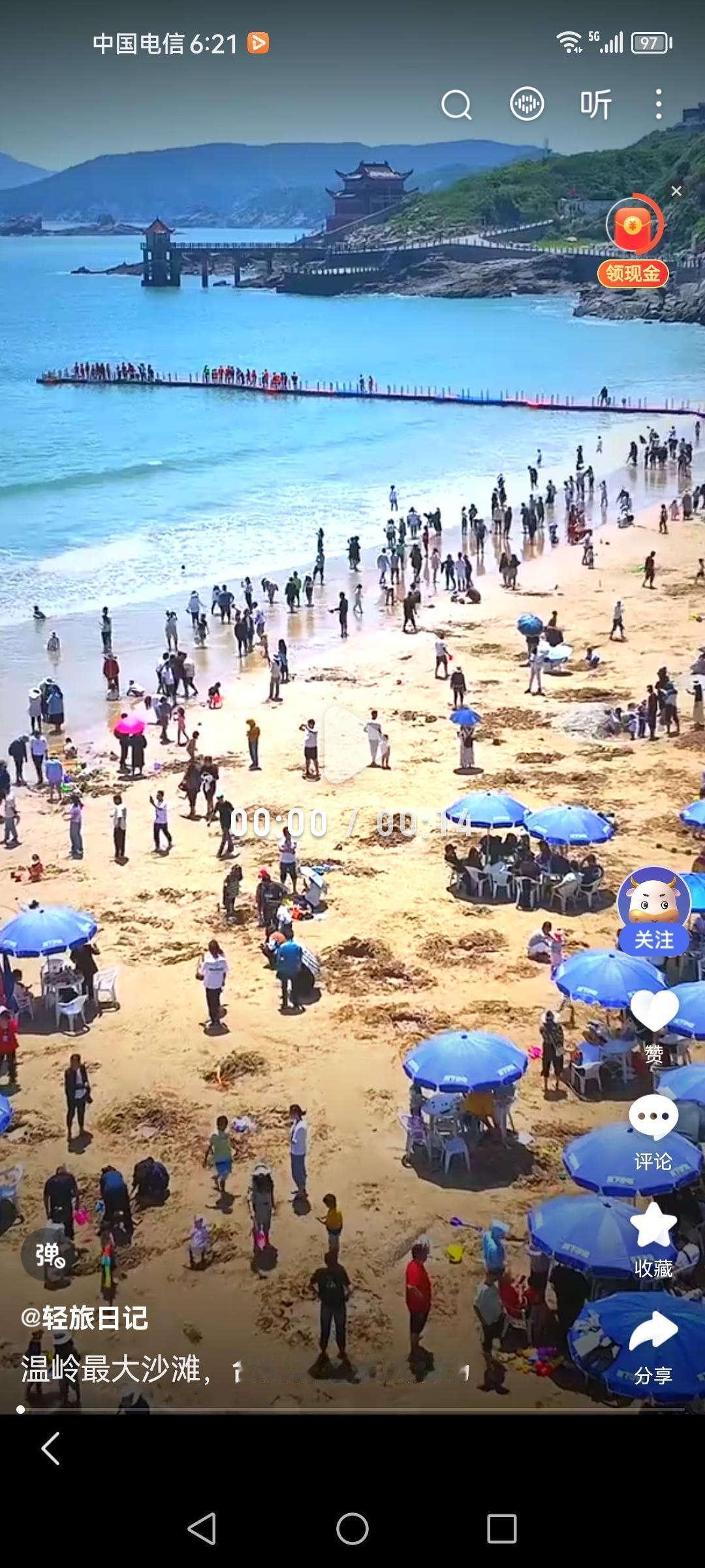 温岭的沙滩太让人惊喜了!4月20日起,金沙滩和洞下沙滩永久免费开放啦。金沙滩在石塘镇,全长1400多米,沙质金黄细腻,坡度平缓,海浪温和,对岸还有网红滨海绿道,很适合带娃家庭、老人和爱拍照的人。 而洞下沙滩在松门镇,是台州面积最大的天然海滨浴场,长600余米,沙质柔软,海水清澈。这里有天然山洞,潮涨洞没、潮退洞现,退潮后能赶海拾贝、挖沙蚶,还能坐观光索道俯瞰全海景。这个夏天,一定要去温岭这两大沙滩看海!