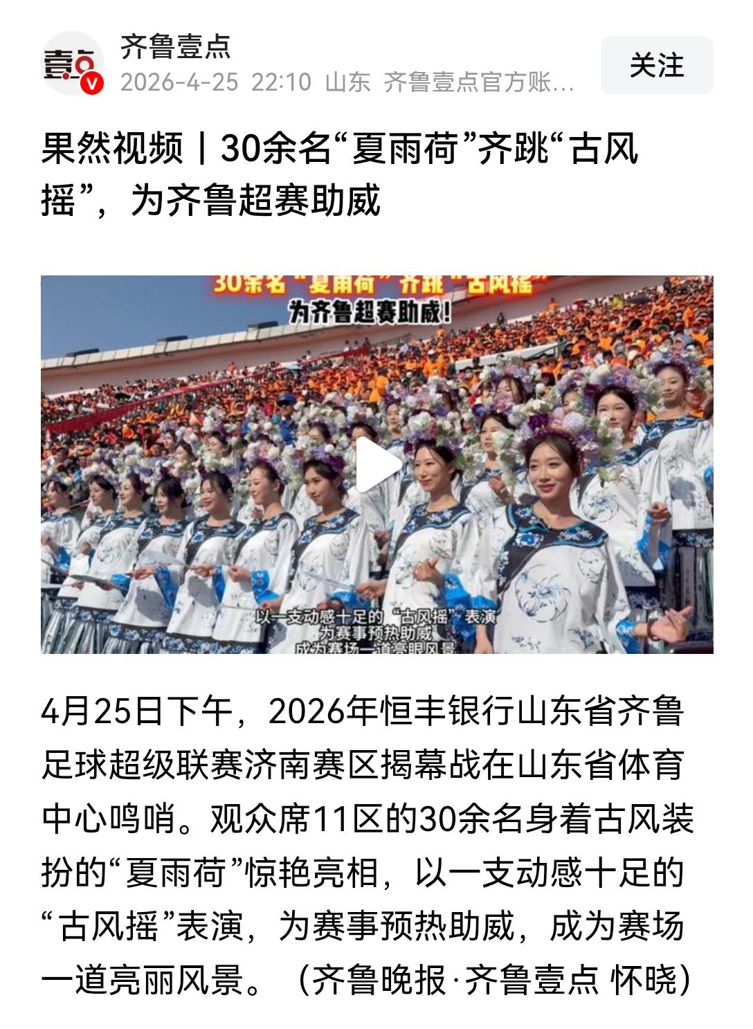 [吃瓜群众]山东“齐鲁城超”一直没啥存在感,但这回“夏雨荷啦啦队”🔥了——被骂🔥的[吐血] [思考]不过有一说一,用“夏雨荷”这个名号,还组个“团”,明显就是玩梗而已,用不着这么敏感吧?