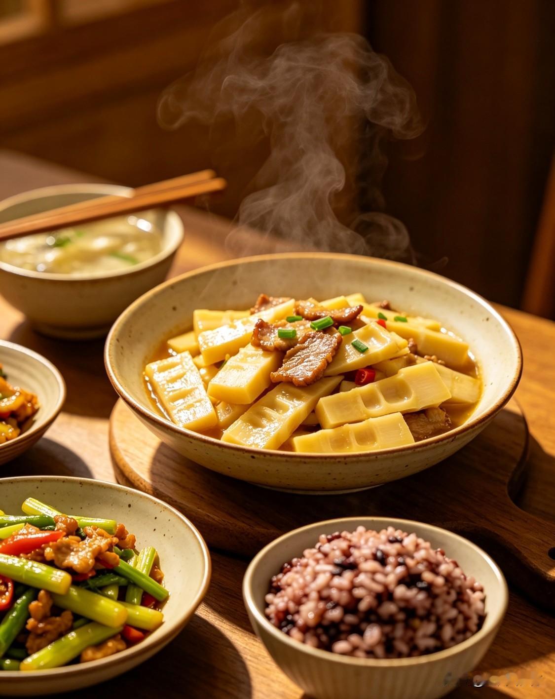 生活的小美好,往往藏在一日三餐的烟火里。趁着春光正好,亲手安排了一桌暖心家常饭,简单食材,用心烹饪,吃出满满的幸福感。 清晨去市集挑了新鲜时令食材,回家慢慢料理。一盘凉拌小菜清爽爽口,脆嫩解腻,入口清甜开胃;家常清炒时蔬色泽鲜亮,保留了食材本身的鲜香,清淡不油腻。再炖上一锅温热滋补的营养鲜汤,汤色清亮,鲜而不腥,一口下肚,浑身都暖洋洋的。 没有精致大餐的华丽,也没有繁琐复杂的做法,都是最朴实的家常味道。一菜一汤,一饭一蔬,不刻意追求奢华,只讲究吃得舒服、吃得安心。 平凡日子,烟火寻常。认真对待每一餐,享受舌尖上的美味,在柴米油盐里感受生活温柔,把普通的日常过得有滋有味、热气腾腾。