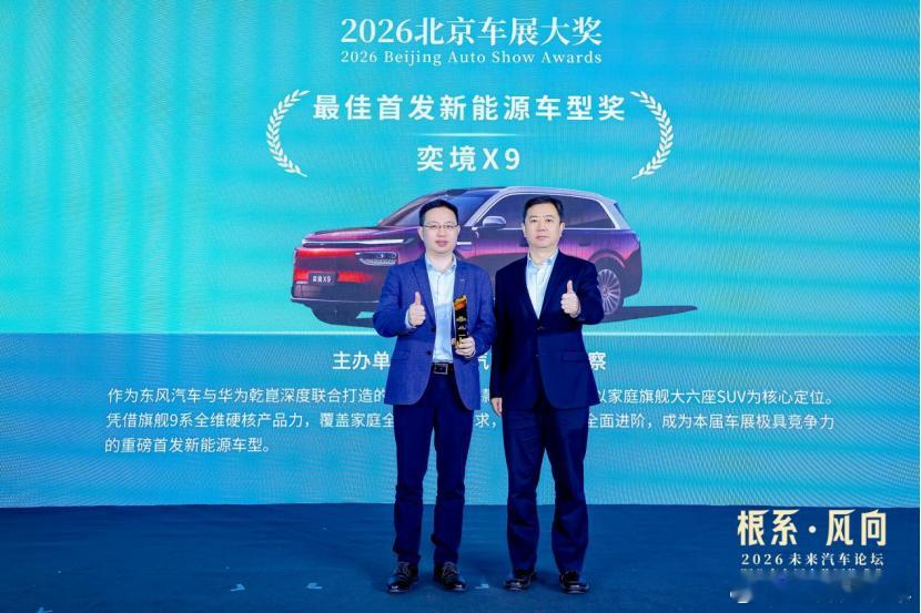作为近期热度不低的新车之一,奕境X9在北京车展上收获不少,比如它斩获了2026北京车展“最佳首发新能源车型奖”。要知道,奕境X9从品牌发布到全球首秀,再到此次获奖,节奏紧密且指向明确:作为东风与华为乾崑全栈原生共创的第一款量产车型,它需要在最短周期内完成从“概念验证”到“行业认可”的跨越。这个奖项,相当于一次第三方认证。在我看来,评委看重什么,比获奖本身更值得拆解。奕境X9的核心竞争力,并非某一项配置的领先,而是“全栈原生共创”模式所带来的体系化能力跃升。传统车企与科技公司的合作,多数停留在供应商层面——车企定义产品,科技公司提供模块化方案。奕境走的是另一条路径:东风注入57年造车底蕴和央企品控体系,华为乾崑则从底层架构开始深度参与,双方联合办公、联合定义、联合开发。这意味着鸿蒙座舱、CAS 5.0六维防碰撞系统等核心技术,并非后期加装的配置,而是从产品定义阶段就作为核心骨架融入整车架构的“原生基因”。如果奕境X9可以建立起“央企造车底蕴+华为最全技术”的独特价值锚点,那它应该会交出一份不错的市场答卷。奕境X92026北京车展