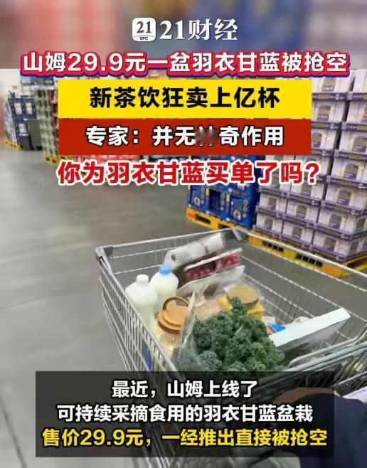 山姆29.9元羽衣甘蓝盆栽被抢空山姆这盆29.9元的“草”,我同事抢了两盆,回来种三天就哭了上架十分钟被抢空,一次抱走七八盆——我还以为是啥宝贝,点开一看:这不就路边绿化带那玩意吗?我朋友圈一姐妹,山姆刚上架就冲去抢了两盆羽衣甘蓝,兴奋地发动态:“实现吃草自由了!”结果三天后私信我:“叶子疯长,但苦到我怀疑人生,到底咋吃啊?”我去搜了一下,这东西以前就是路边绿化带里的观赏草,又硬又苦,连羊都不爱吃。价格也从2024年的八毛钱一斤,一路涨到二三十块,翻了快30倍。谁把它捧红的?新茶饮。喜茶那款“羽衣纤体瓶”,首月卖爆350万杯,直接把羽衣甘蓝包装成“超模同款”“养生顶流”。年轻人一看到“纤体”“轻食”就上头,29.9元一盆,种一次号称能吃一年——听着好像挺划算?其实营养师早说过了,这玩意凉拌苦得要命,打成汁膳食纤维也没剩多少。商家卖的根本不是菜,是“我也在健康生活”的仪式感。我同事那两盆,现在还在阳台晒着呢。她说:“就当买个好看的绿植吧,吃是真的吃不下去。”你会花30块钱买一盆“吃一年的苦菜”吗?评论区告诉我——你是不是也为这种网红智商税交过钱? 👇