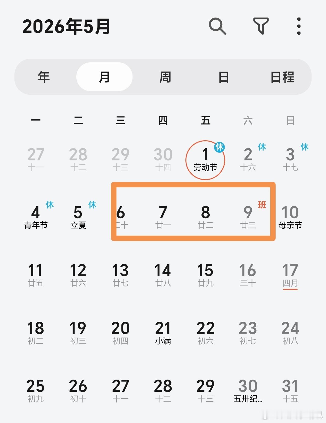 连续两周上四休三 4月的最后一周27日——30日上班,1日——3日休息;5月的第一周4日——5日和10日休息,6日——9日上班。我们希望不远的将来实现一周上4休3了,现在可以先预演一下。