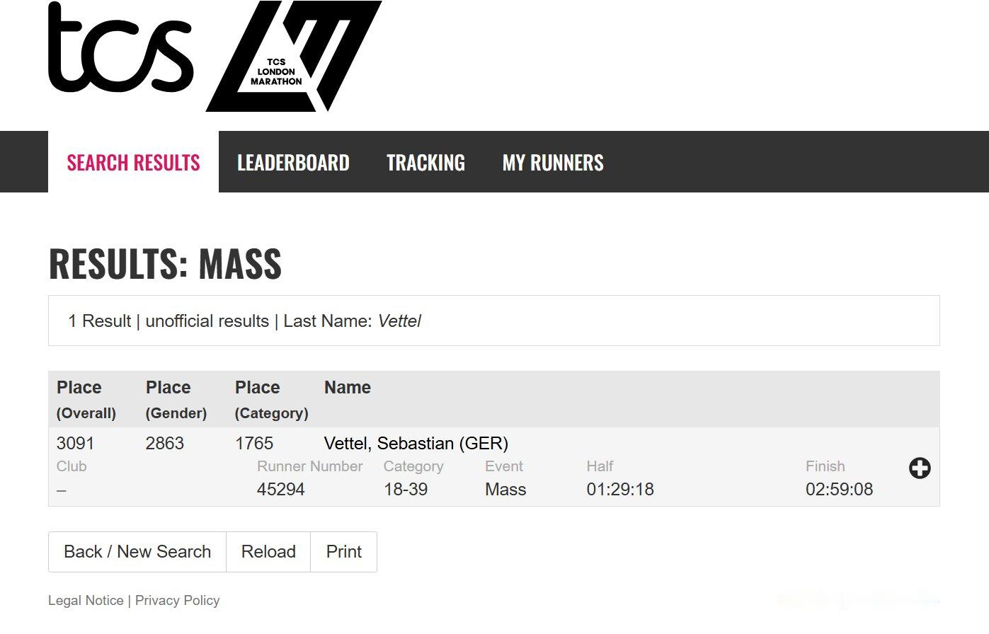 f1 维特尔昨天也参加了伦敦马拉松,并且成功跑进了3小时大关 - 2小时59分08秒的成绩。