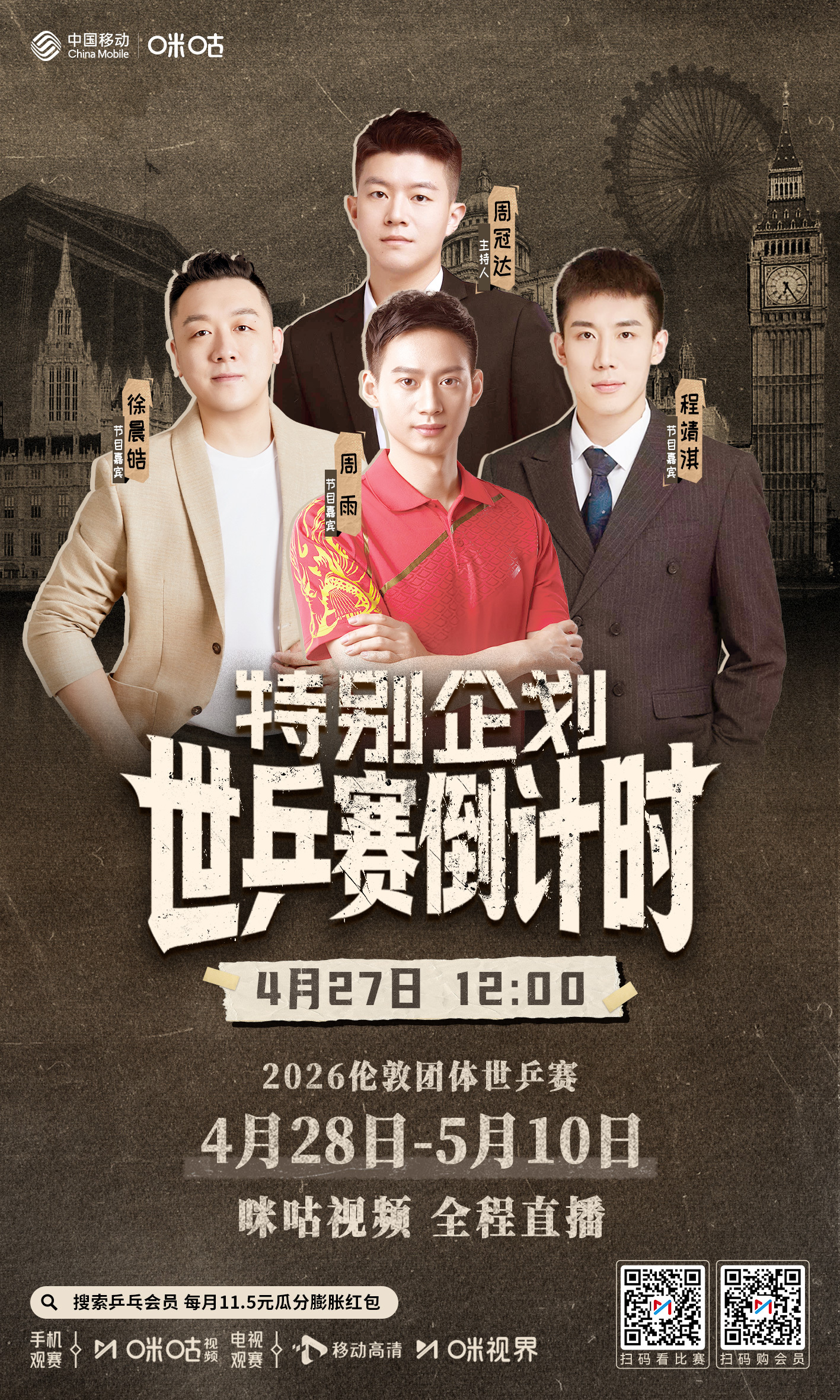 2026伦敦团体世乒赛🤩 特别企划-世乒赛倒计时🍄 今天12:00 咪咕视频直播🔗 网页链接#国乒今日出征伦敦##伦敦世乒赛倒计时1天#