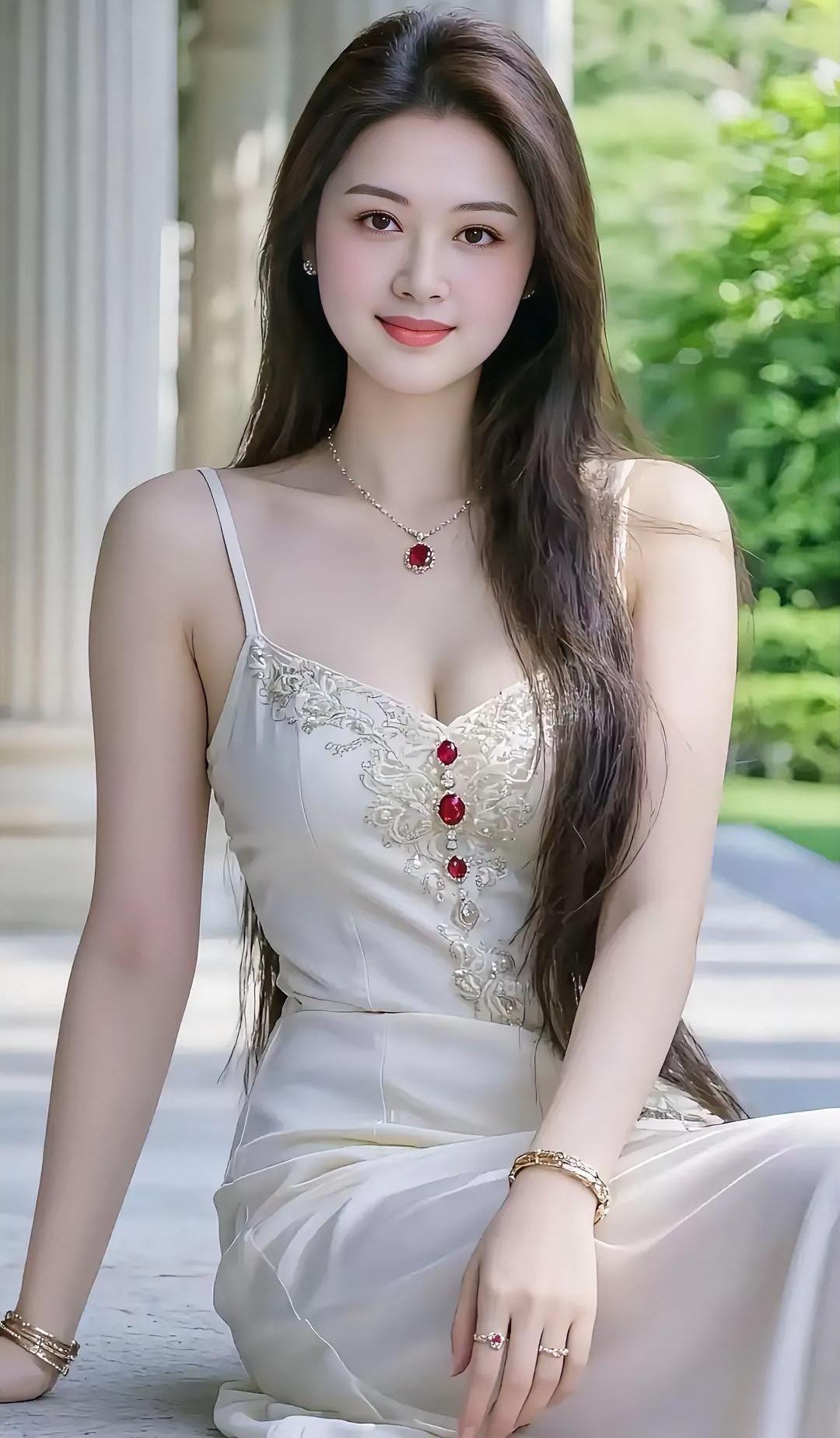 优雅气质,红宝石项链,柔美白裙,阳光下的美丽瞬间