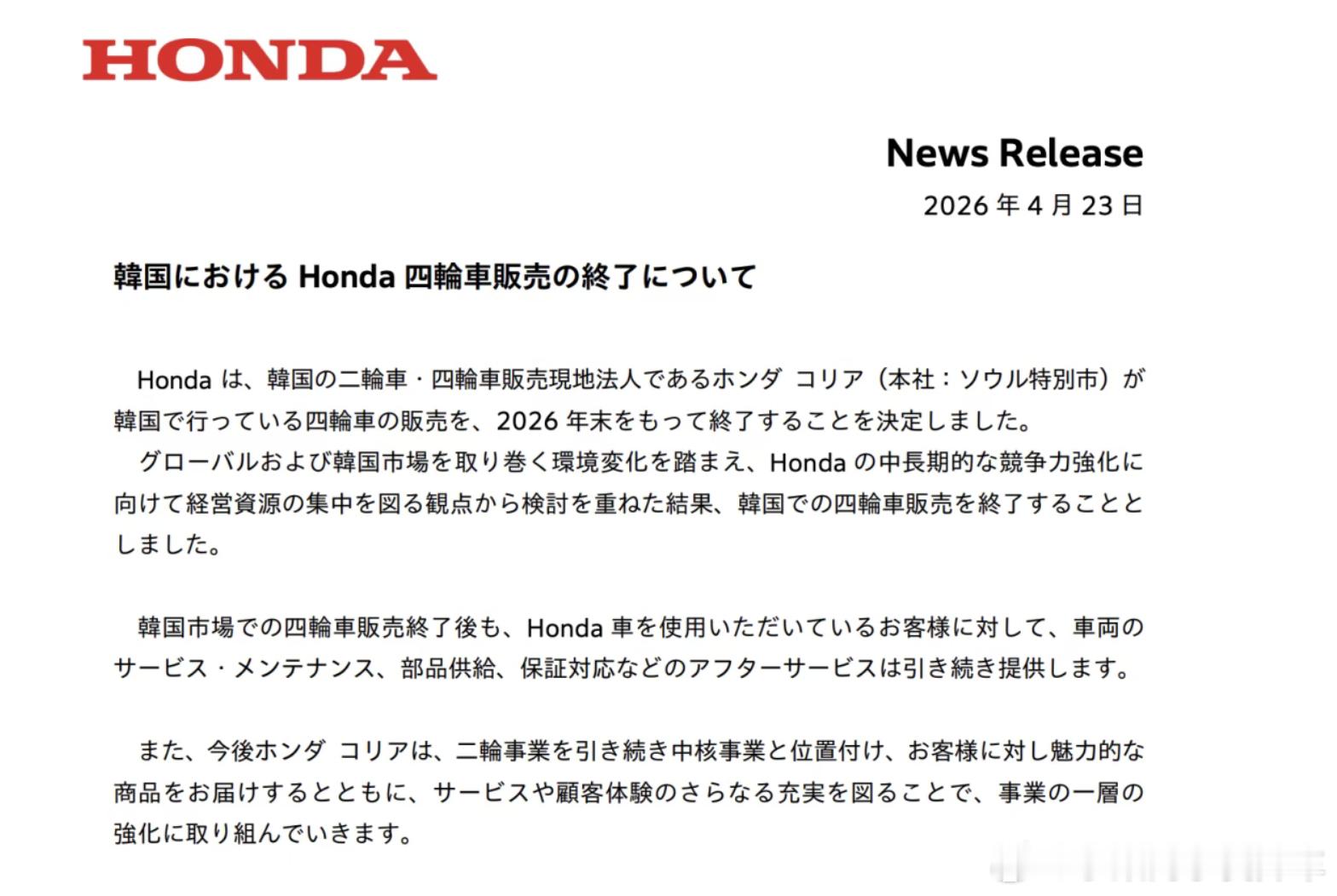 而且本田在韩国也没有工厂,我觉得这个市场,放弃也是对的