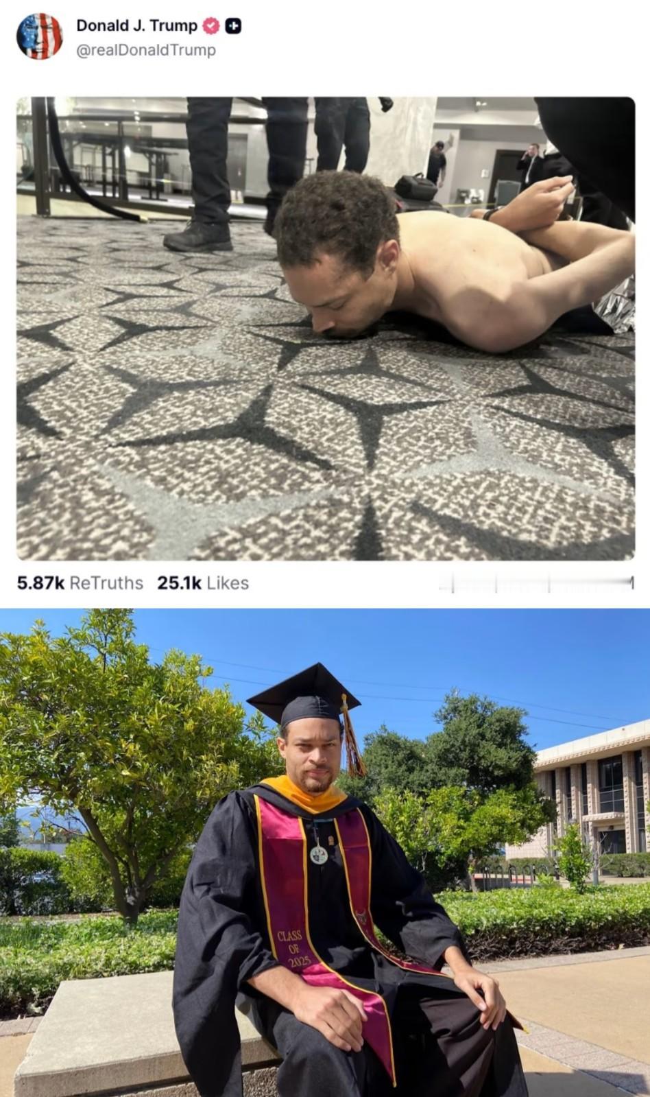 政治信仰和立场,决定了人们对白宫记者晚会枪击案截然不同的态度。单看事实本身,枪手科尔·艾伦是加州理工的高材生、教育机构的优秀教师,作案动机清醒。而两年前宾州巴特勒竞选演讲中刺杀特朗普的枪手克鲁克斯,也是曾获得全美数学·科学奖学金的优等生。 美国是西式民主国家,但很显然,美国的政治模式并没有让很多人感觉到他们的意愿得到了尊重,他们沮丧地认为,“民主的美国”没有一个属于他们的话筒,他们感受到的是强烈的政治碾压感。这让有的原本体面的人、有理想的人走上了个人恐怖主义的绝路,成为愤怒的“独狼”。这些“独狼”发出的是政治压抑中变形的尖叫。 特朗普总统发那张枪手被扒去衣服摁在地上的照片,表达了受到法律保护的权力的强大、威严,以及他从权力巅峰对个别不安分蝼蚁的蔑视。
