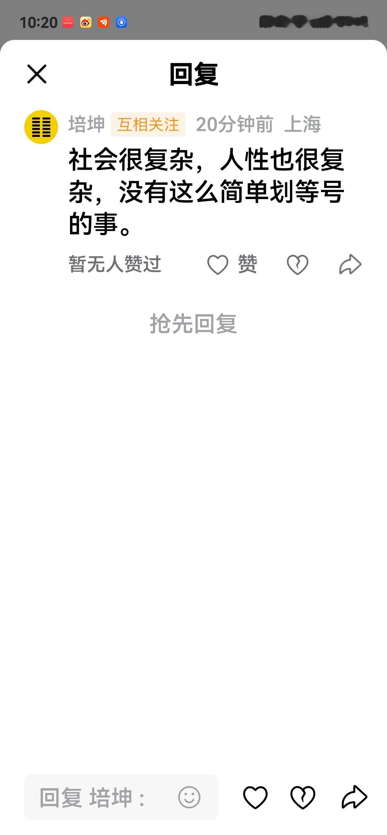 有人留言,社会很复杂,人性也很复杂,没有这么简单划等号的事。 社会不复杂,都是为了利益,天下熙熙,皆为利来;天下攘攘,皆为利往。人与人之间是价值交换。 你比别人优秀一点点,别人嫉妒你;你比别人优秀许多,别人崇拜你。 做投资,看懂了人性,一切变得简单了。当大家都恐惧时,我们买一点好股票。当大家都争抢时,卖给他们一点。 几千年来,人性几无变化。