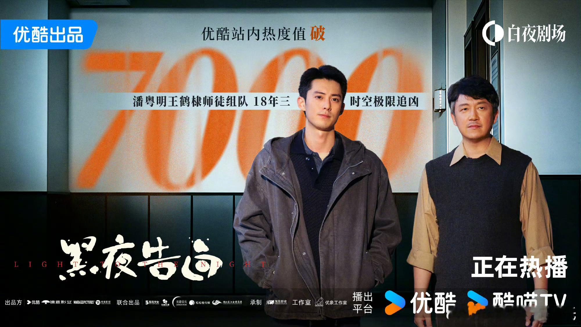 潘粤明、王鹤棣黑夜告白 首日数据首日优酷热度6993,实时热度破7000,最高7169~首日灯塔播放量983万,预告云合/酷云播放量700万上下~