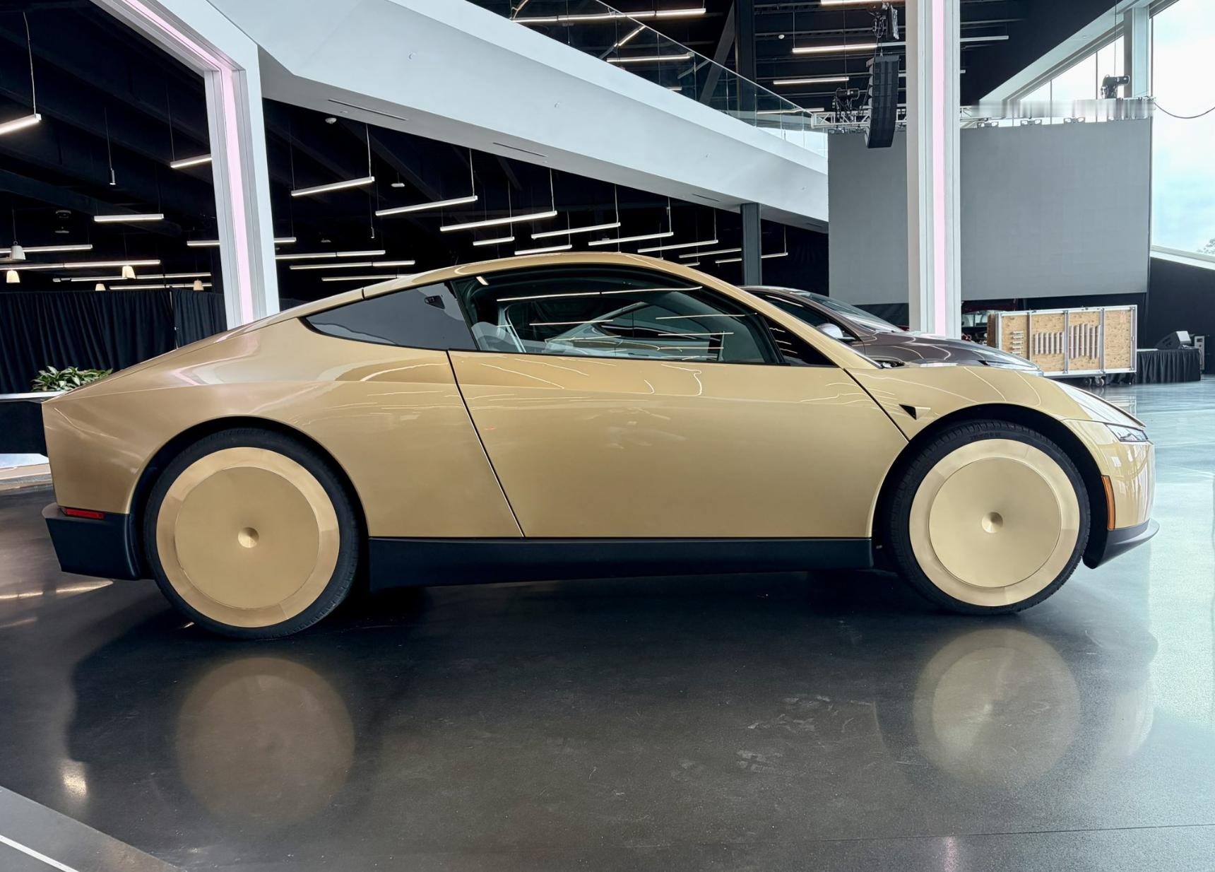 特斯拉已正式在德州超级工厂启动Cybercab量产,首批下线的车辆外观进行了惊艳的改造,新车采用亮丽的香槟金色外观,并搭配高光泽饰面,与2024年“我们,机器人”活动上亮相的哑光原型车截然不同。