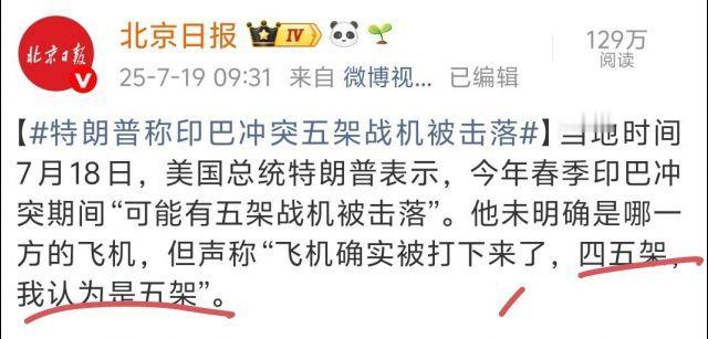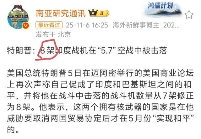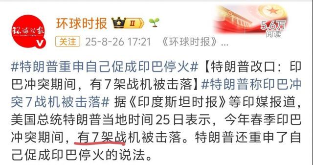 川普:印巴空战有11架飞机被击落