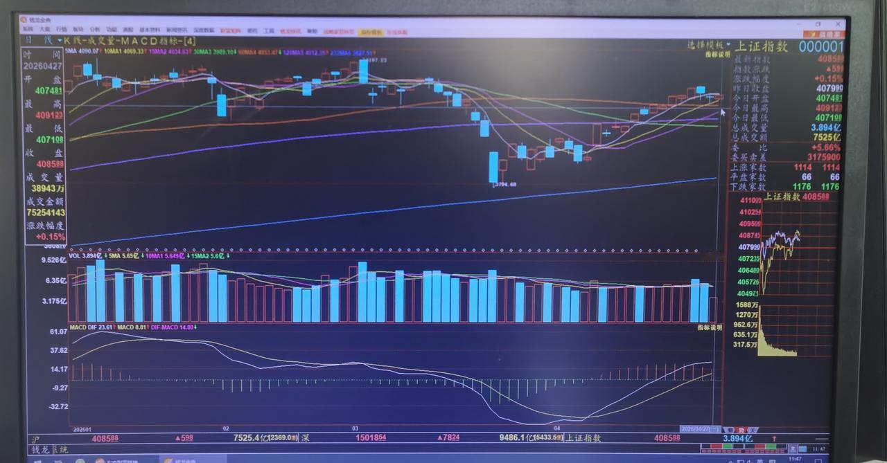 老手说股:(3) 家人们,大盘今天如期上涨,可是力度较弱,上午已经收盘,讲几句。 临近五一长假,大盘上攻欲望并不强烈,个股上涨和下跌各半,今天跌停较多,对于市场人气有些影响。 技术上,大盘受到了上行的10线支撑,呈现低开高走,可是由于长假因素,力度差了一些。 大盘已经连续数天收盘位于60线之上,后市继续看高一线。 其它也没什么,操作上忌追,因为分钟图中,30分钟,60分钟高位钝化。[玫瑰][发]