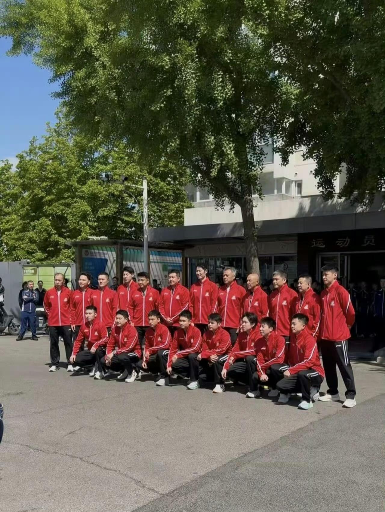 国乒全家福来了!伦敦世乒赛国乒全家福 4月27日,国乒出征伦敦世乒赛团体赛!百年荣光,重返起源地,团队同心,共赴巅峰对决,国乒全队今日出征伦敦,来看看国乒全家福,全员中国红。 马龙现身了,站在王励勤、王皓肖战等人中间。另外,青年队的队员们也排队欢送国庆出征队伍。 加油,国乒!