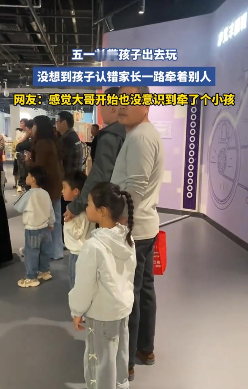 河南,一位父亲周末带着女儿去逛科技馆,当时人一多,就发现女儿牵着一名陌生男子的手,父亲当场反应过来,这是认错人了,有意思的是,陌生大叔也没反应过来,及时后面发现也没有拆穿,就默默陪着女孩表演 当天,管理面人挤人,父亲低头掏手机的工夫,再抬头,身边空了。挤在人群里来回找了两圈,最后在扶梯口看到了自家闺女,小姑娘正紧紧牵着一个陌生男人的手,小碎步跟得紧紧的,脑袋都快贴到人家胳膊上了,那叫一个亲热 那个被牵着的大叔,一开始也没反应过来,低头瞅了一眼,又抬头看了看前方,估计心里还纳闷:这谁家孩子这么黏人?直到他无意中和后头这位满脸焦急的爸爸对上了眼神,才恍然大悟 但他没说话,也没松手,就那么笑呵呵地让孩子继续牵着,该走还走 后来走到一个科普台。大叔停下来看,小姑娘也跟着停下来,仰起脸准备跟“爸爸”说点什么,这一仰头,四目相对,空气突然安静 小女孩的眼睛从迷糊到震惊,再到害羞,那个变化过程也就一两秒钟。小脸刷地红了,二话不说,转身就跑,跟脚底抹了油似的,一溜烟钻进了亲爹怀里 亲爹后来在网上说,那一刻自己是又好气又好笑。气的是闺女六亲不认,亲爹站旁边都没发现;笑的是那个大叔的配合,从头到尾没拆穿,还让孩子牵着走了一路,最后还笑呵呵的 有网友说:这大哥真好一看就是好人 这话还真没说错,一般情况下,大街上突然有个陌生小孩来牵你的手,您第一反应是啥?多数人肯定是先抽手。不是心狠,是本能的警惕。还有的会四下张望,甚至有的大声嚷嚷“谁家孩子”,把场面搞得很尴尬 可这位大哥呢?他没抽手,没嚷嚷,甚至没低头去纠正那个小女孩。他就那么让她牵着,陪着她走了一路 有人说他可能是没反应过来,我觉着不可能。一个八九岁的女孩,又不是自己的娃,牵着你走,你能没感觉?他肯定早就发现了,但他选择了最简单、也是最温柔的一种方式,不揭穿 想想看啊,如果他当时突然甩开手,或者来一句“小朋友你认错人了”,那小女孩会怎样?大概率是当场吓一跳,然后慌慌张张找爸爸,说不定还会哭出来。在那么多人面前,那种尴尬和慌张,对一个孩子来说,可不是什么好受的滋味 可这位大哥没有这么做。他把自己当成了一个“临时爸爸”,让孩子继续安心地牵着,直到她自己发现真相,而且他知道孩子父亲就在身后 这叫什么?这叫给孩子留面子 别以为孩子小,不懂什么叫面子。八九岁的姑娘,已经有了羞耻心,知道自己认错人了,那种不好意思是真真切切的。但如果这个真相是被别人戳破的,那份尴尬要放大十倍。而如果是自己发现的,跑开了也就跑开了,顶多脸红一会儿,事儿就翻了篇。