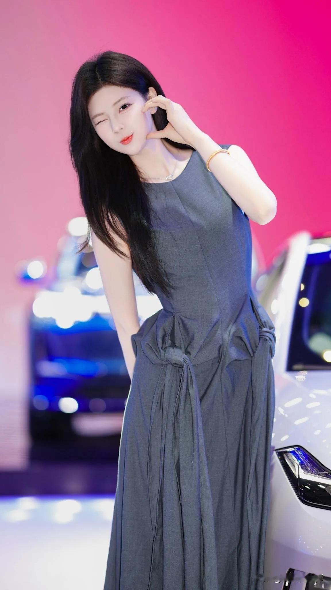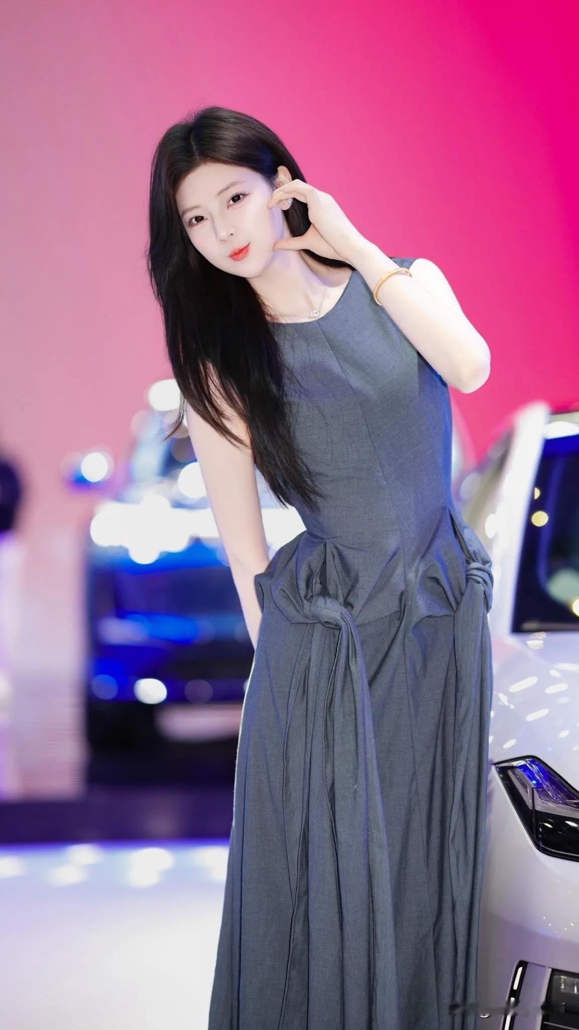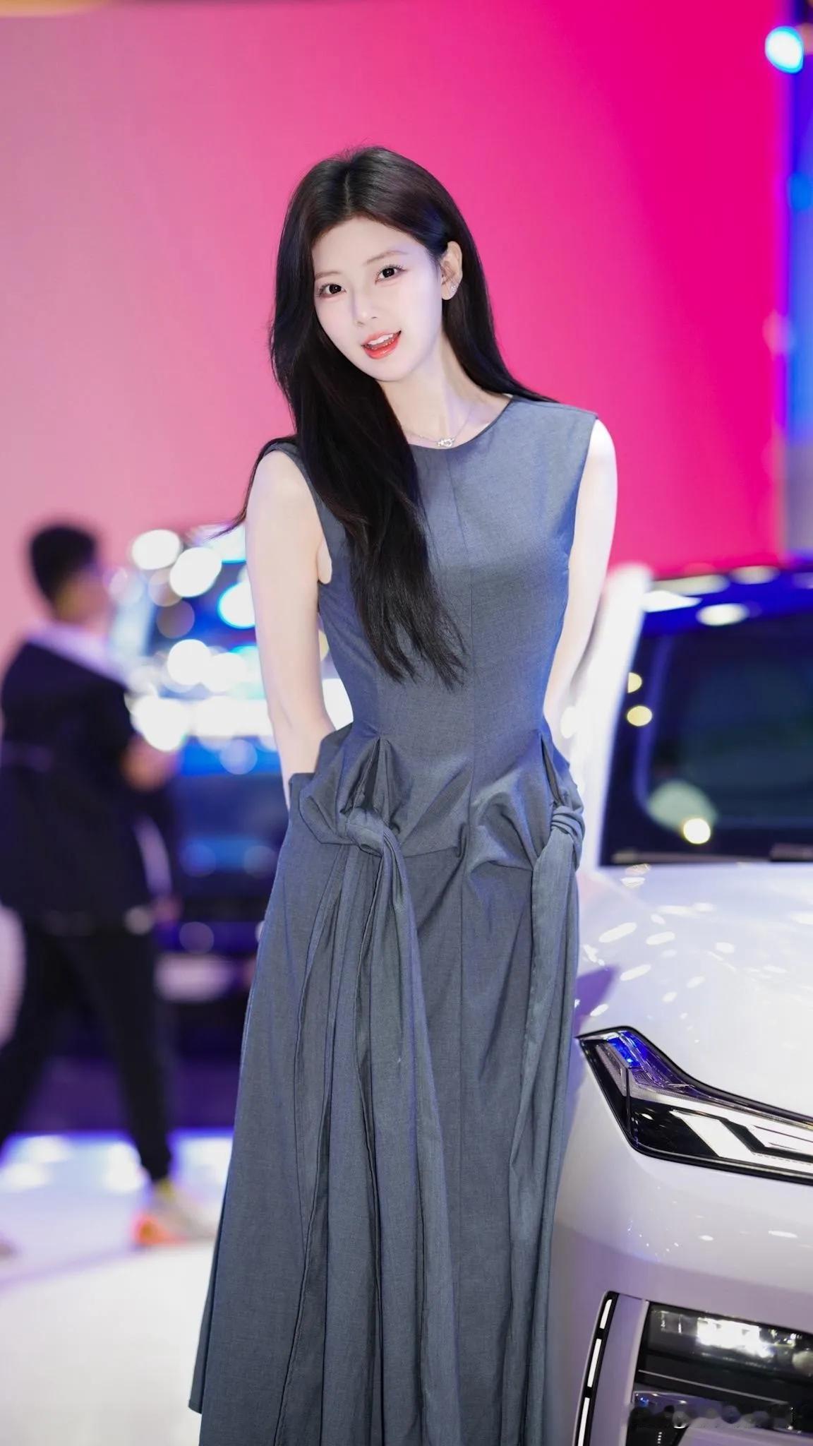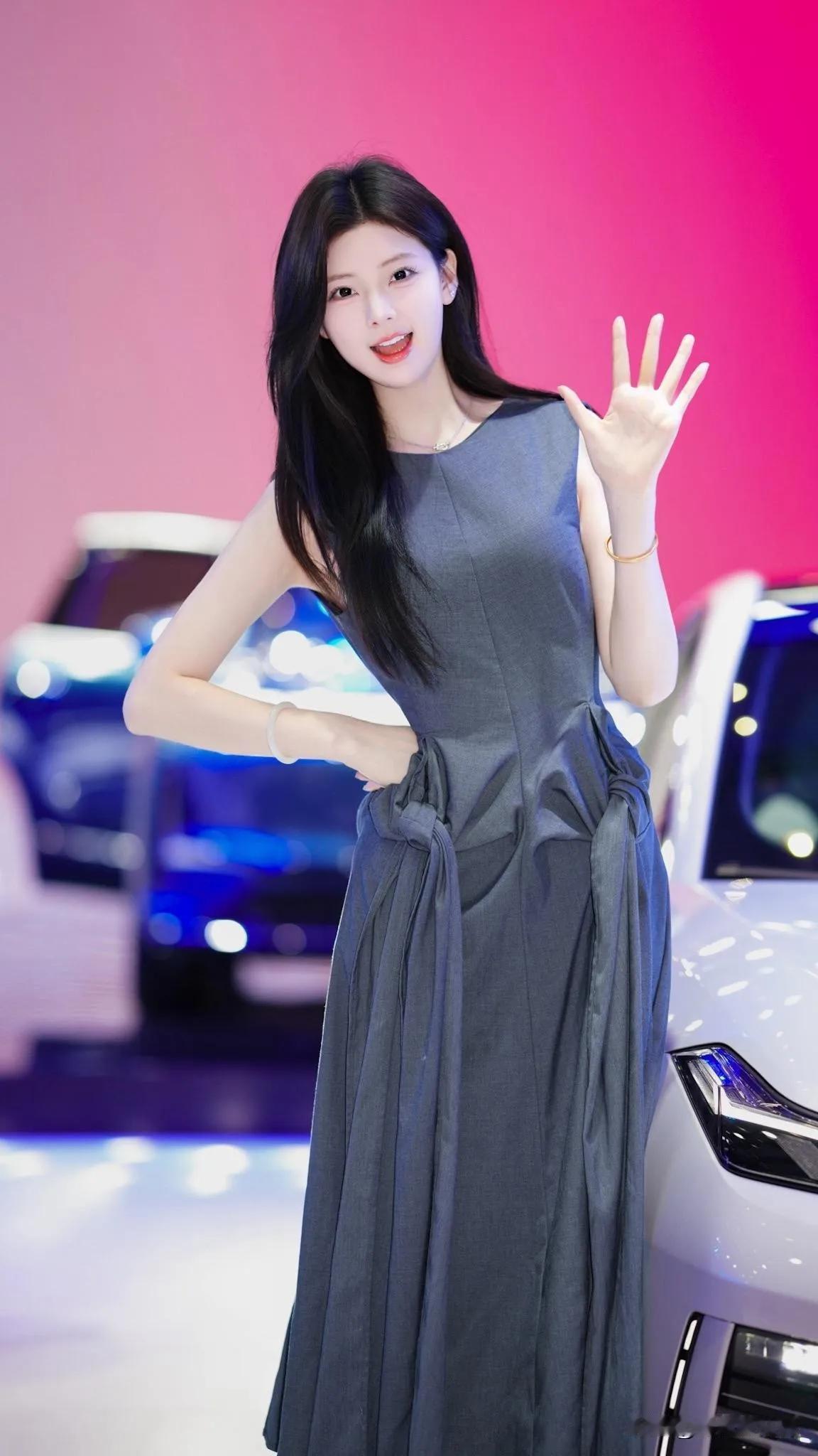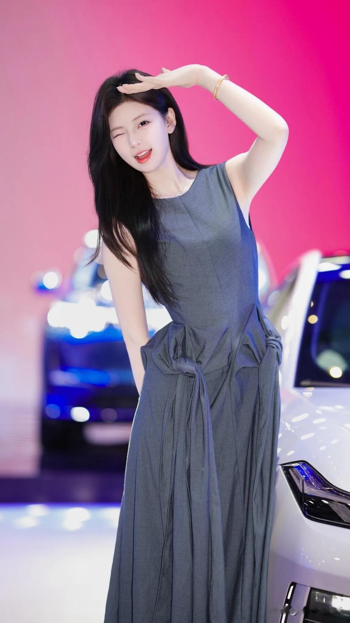 优雅车模秀,性感连衣裙,车旁迷人姿态,闪耀珠宝配饰 车展模特[给力]