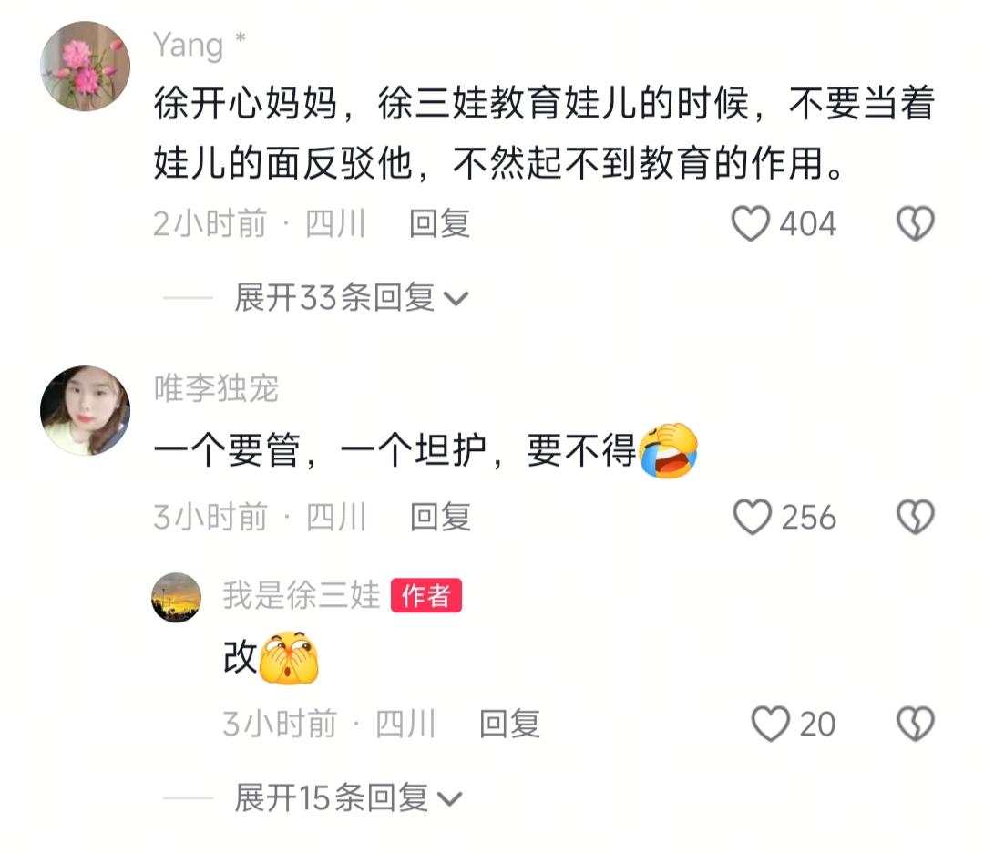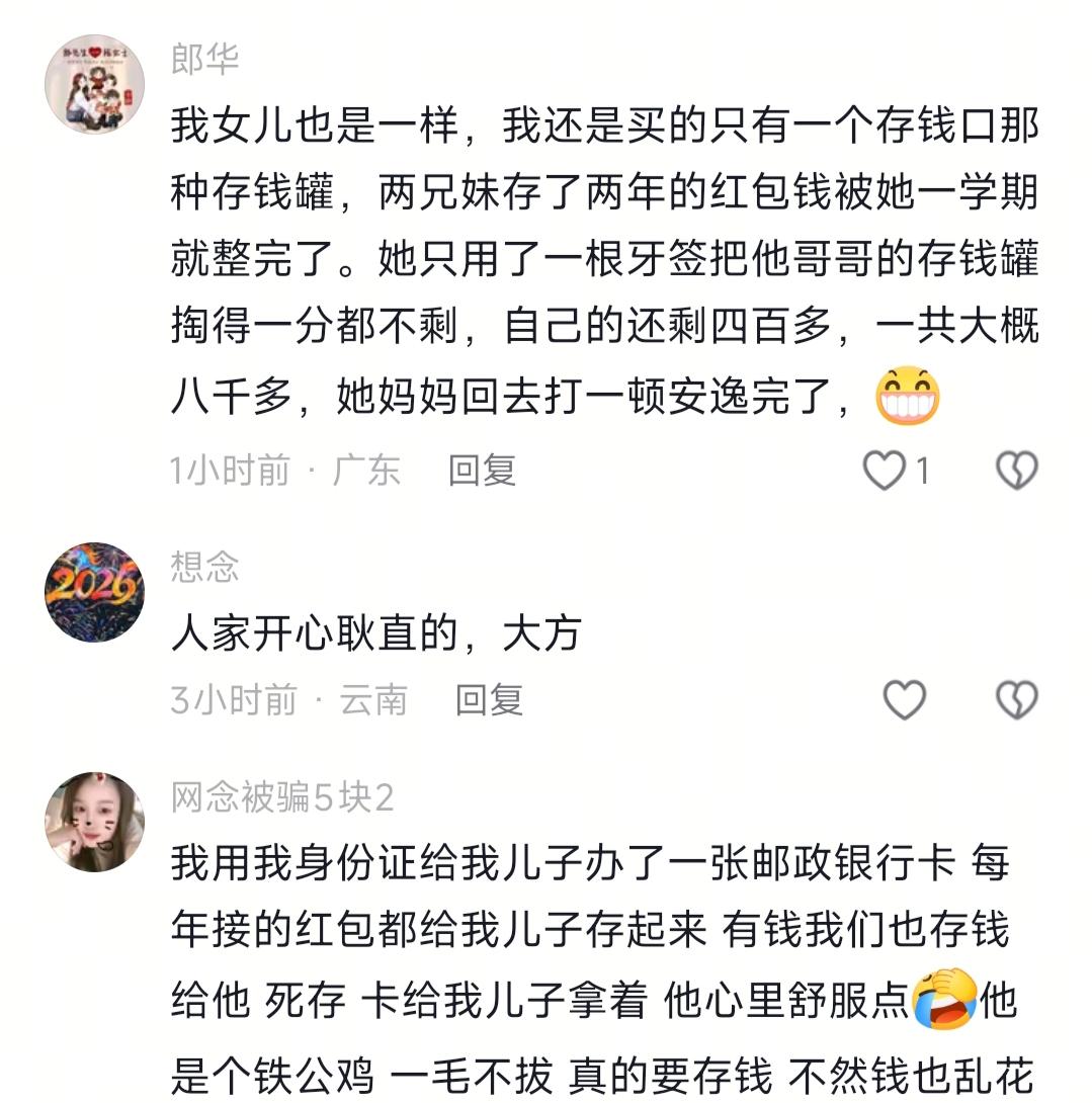 看到徐三娃训女儿乱花钱,我忍了 看到他撬女儿的不锈钢存钱罐,我也忍了 可是看到他被老婆拆台还嘴硬说两回事,我实在忍不住了 救命!刷到徐三娃这条视频我直接笑到跺脚又有点堵得慌,本来想刷会儿短视频摸鱼打发无聊,结果从他板着脸教育女儿乱花钱,到被老婆当场拆台,全程反转给我看懵了,评论区更是吵得快翻了天。 说实话,看到三娃让女儿站好认错,训她拿零花钱给同学买吃的,我本来还觉得没啥,结果他老婆一开口我直接笑喷了。我晕,这场景我太熟了,之前我哥训我侄子乱花压岁钱,本来训得头头是道,我嫂子当场就拆台“你上个月还偷偷充游戏花了两千”,我哥当场脸就绿了,跟三娃一模一样。 三娃还嘴硬说这是两回事,真的胡扯,这不就是妥妥的双标嘛。自己省吃俭用借出去500块,人家欠着不还都没辙,反倒训起孩子大方给同学花钱,换谁能服气啊? 说真的,我本来以为训完话就杀割了,万万没想到三娃直接把女儿的不锈钢存钱罐给撬开了,一数居然有6300块,当场就要全部上交,女儿直接哭崩了,我看着都有点郁闷。 之前听别人说,种什么因得什么果,自己都做不到的事,非要硬逼着孩子遵守,这教育能有啥用?评论区更是吵翻了,有人说爸妈教育孩子不能当面拆台,不然孩子有撑腰的根本不听;也有人说妈妈就是故意说给欠钱不还的人听的,还有人晒自家娃存钱的事,我和小伙伴都惊呆了,现在小孩存钱罐里居然能有这么多钱? 总之啊,我想说的是,教育孩子这事,首先得自己先做到位,不然真的没说服力。还有两口子教育孩子最好提前统一口径,别当着孩子面互相拆台,不然真的全白费劲。你们说对不对?
