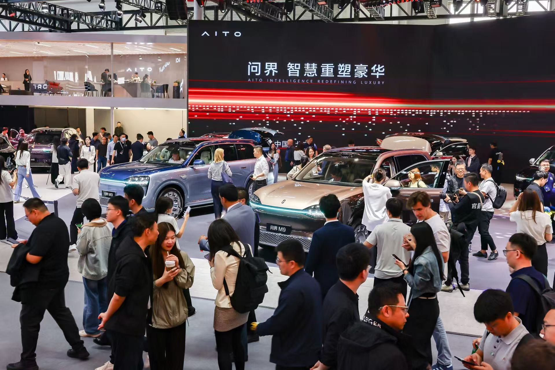 此外,问界M8凭借3510mm超长有效空间和鸿蒙座舱的智能交互体验,重新定义“新豪华”出行方式;M7新增夜紫专属车漆,进一步丰富用户选择;M5则以运动化造型吸引年轻群体驻足。五车同台的震撼场面,不仅彰显了问界在高端新能源市场的全面布局,也体现了其“以用户为中心”的产品理念。第一印象与期待:从挑战者到引领者的蜕变站在问界展台前,最直观的感受是:它不再是那个初出茅庐的挑战者,而是一个已经站稳脚跟、自信从容的高端品牌。无论是展台设计的科技感、展车工艺的精致度,还是技术体验的深度与广度,都传递出一种成熟品牌的底气与格局。