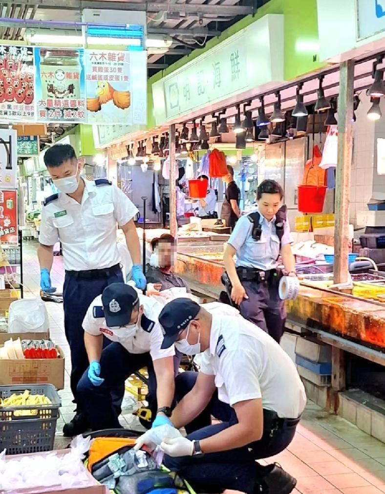 就在刚刚(27日)9时42分,香港沙田水泉澳邨街市,警方接报指一名男子持刀,斩伤两人,其中一人颈部中刀浴血,警员接报到场制服凶徒及将他拘捕,两名伤者清醒送院治理。警方正调查事件。 现场消息称,涉事者为水泉澳街市的档贩,据了解,鱼档档贩向猪肉档档贩施袭,警方封锁现场并进行调查。