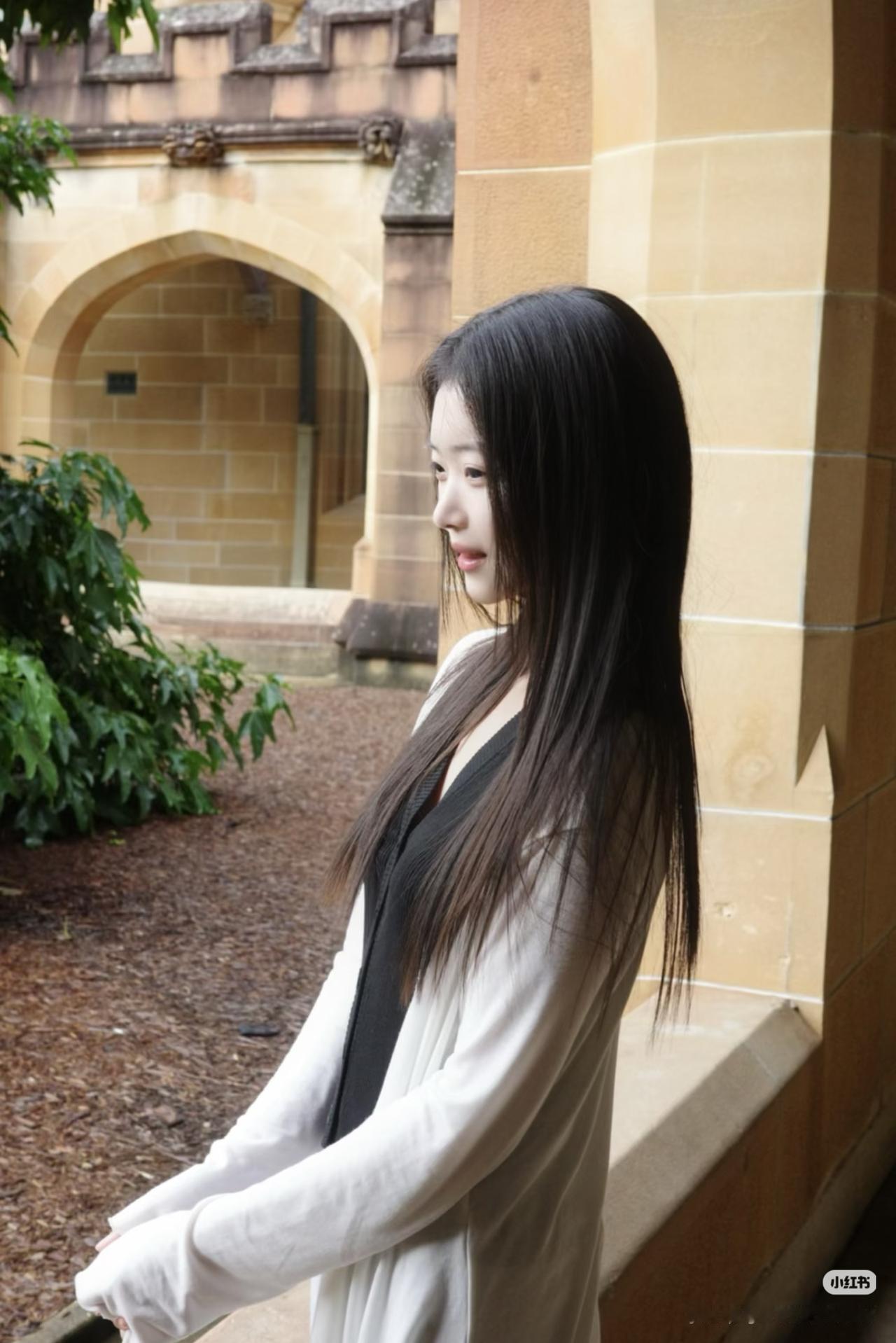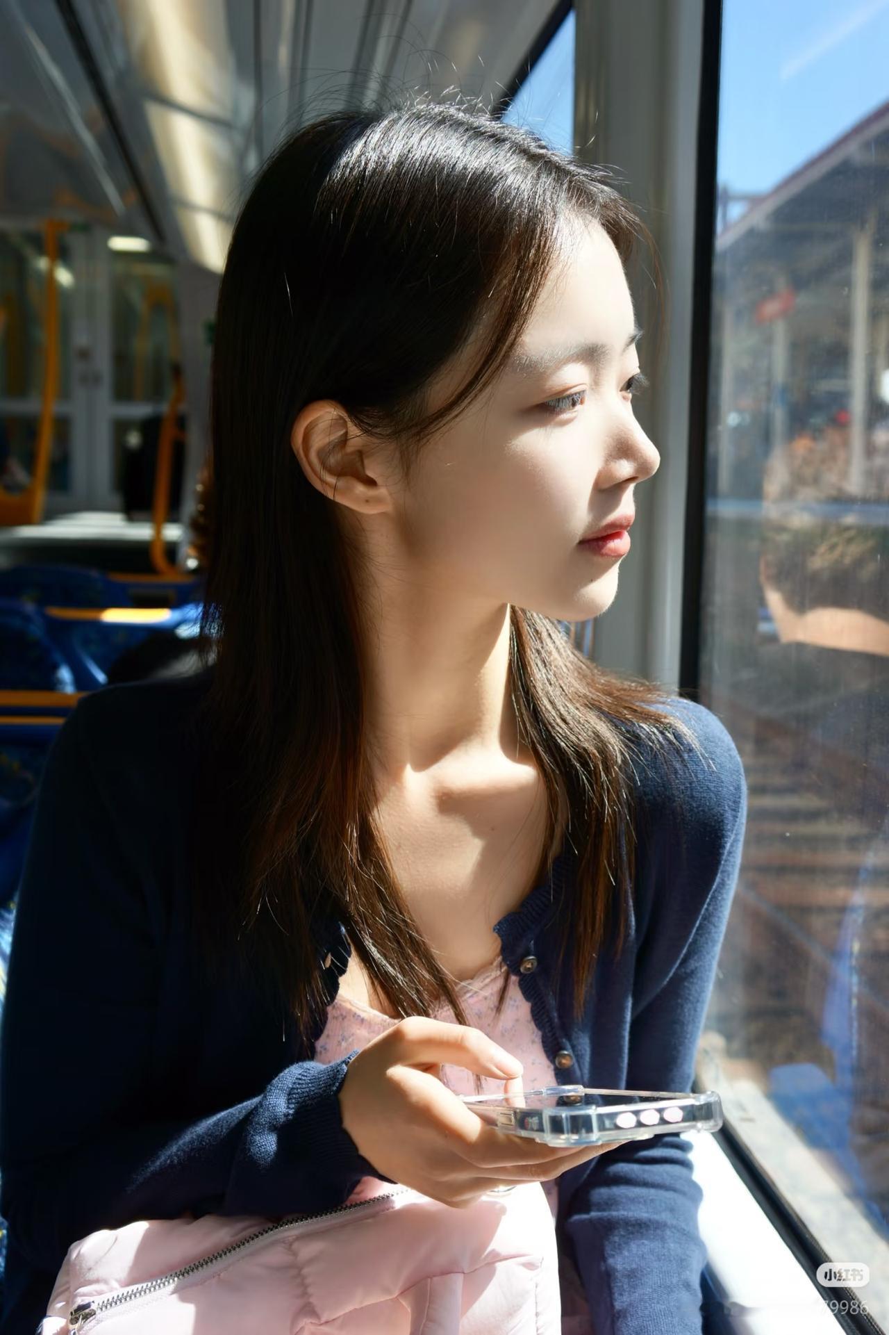 阳光明媚的午后,少女轻倚栏杆,微笑看手机。家中窗外美景随手拍