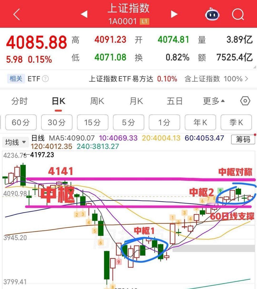 窄幅震荡,接下来怎么看? 临近五一假期,再加上月末年报一季报集中公布,明显的感觉资金比较谨慎,尤其是业绩这块,爆雷的不少,跌停50家,大部分都跟业绩有关,所以整个情绪面来看,还是比较差的,资金抱团也很明显,像CPO、半导体(涨价)业绩这块就有预期,所以还是要注意一下业绩的不确定性。 技术面,周一大盘涨跌幅度并不大,围绕5/10日线区间做震荡,上下波动只有20个点,说明大部分都是观望。从结构上看,就是在,构建第二个中枢的过程,向下关注60日线支撑,不破还是相对强势的走势结构,而走强需突破站稳5日线才有条件再去挑战4114以及4141,但注意力度,力度不足还是会拉回来继续震,个人认为当前这个位置,围绕中枢继续做震荡的概率更大,可以把左边的中枢延伸过来,中枢对应,消化压力。 总结来说,窄幅震荡接下来就要选择方向,是突破站上5日线再去挑战前高4114,还是向下再去回踩60日线的问题。 策略上,回调可以寻求低吸机会,但往上拉有条件还是得多高抛为主,震荡盘适当控制仓位,不要太过激进。 个人观点,仅供参考!