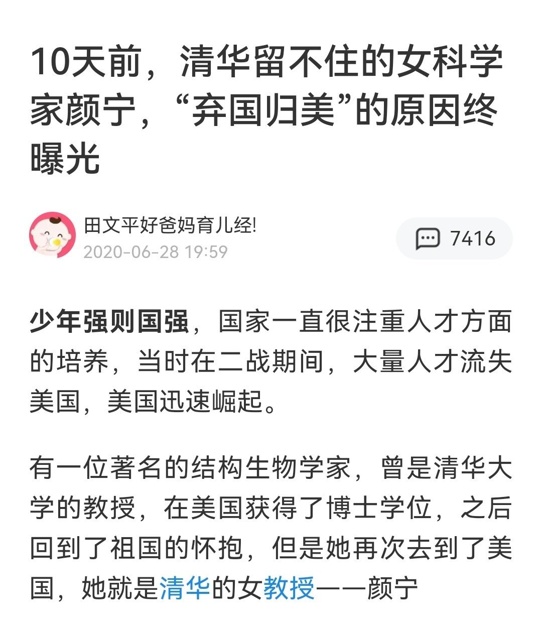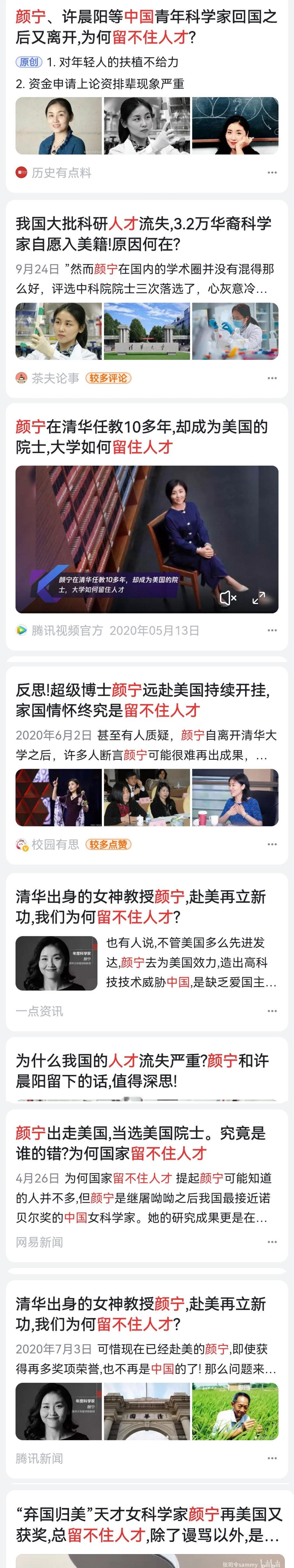 至少在2020年,网上搜索颜宁的名字,都是反思“为什么颜宁没有回国,是不是我们留不住人才?”
