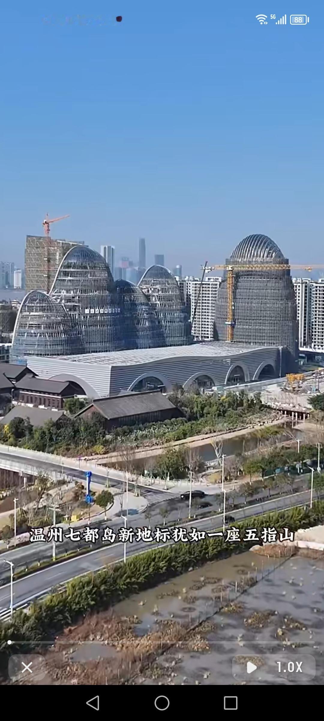 温州七都岛竖起了新地标——温州金融科技文化城,它被大家形象地称为“五指山”。温州正朝着GDP万亿级目标冲刺,这座地标就在这发展浪潮中崛起。 它位于七都国际未来科技岛,建筑设计灵感源于温州“城水相依”地貌。主体由5座塔楼组成,4座通过连廊相连,高度从49.9米到74.7米,高低错落似山势起伏。外立面覆盖20000多块形状各异的定制曲面玻璃,日照下折射出瓯江涟漪般的波光。裙楼呈流水蜿蜒状,内部挑高十多米的共享大厅可作展览。这地标不仅是建筑,更是温州发展的见证。