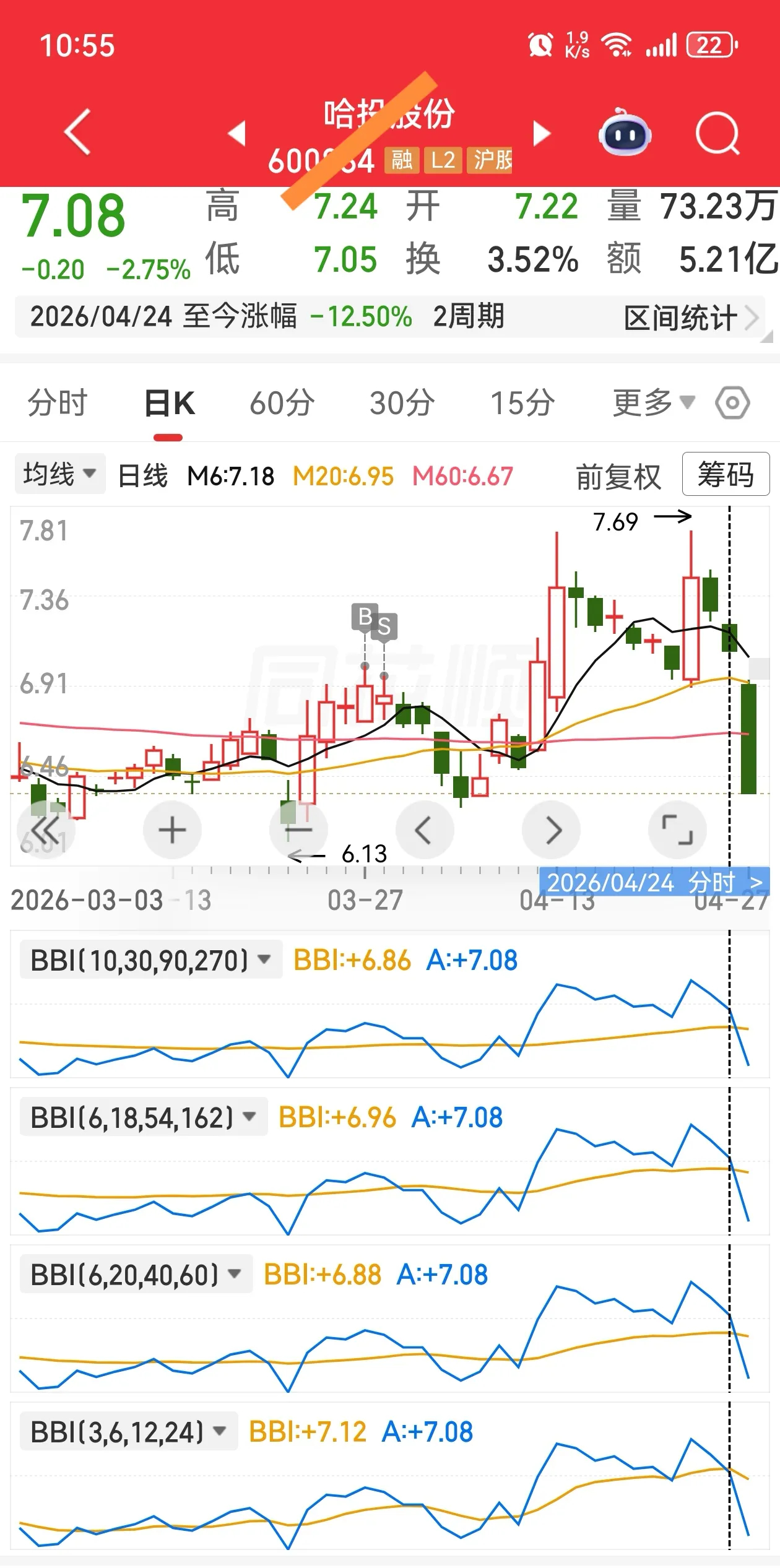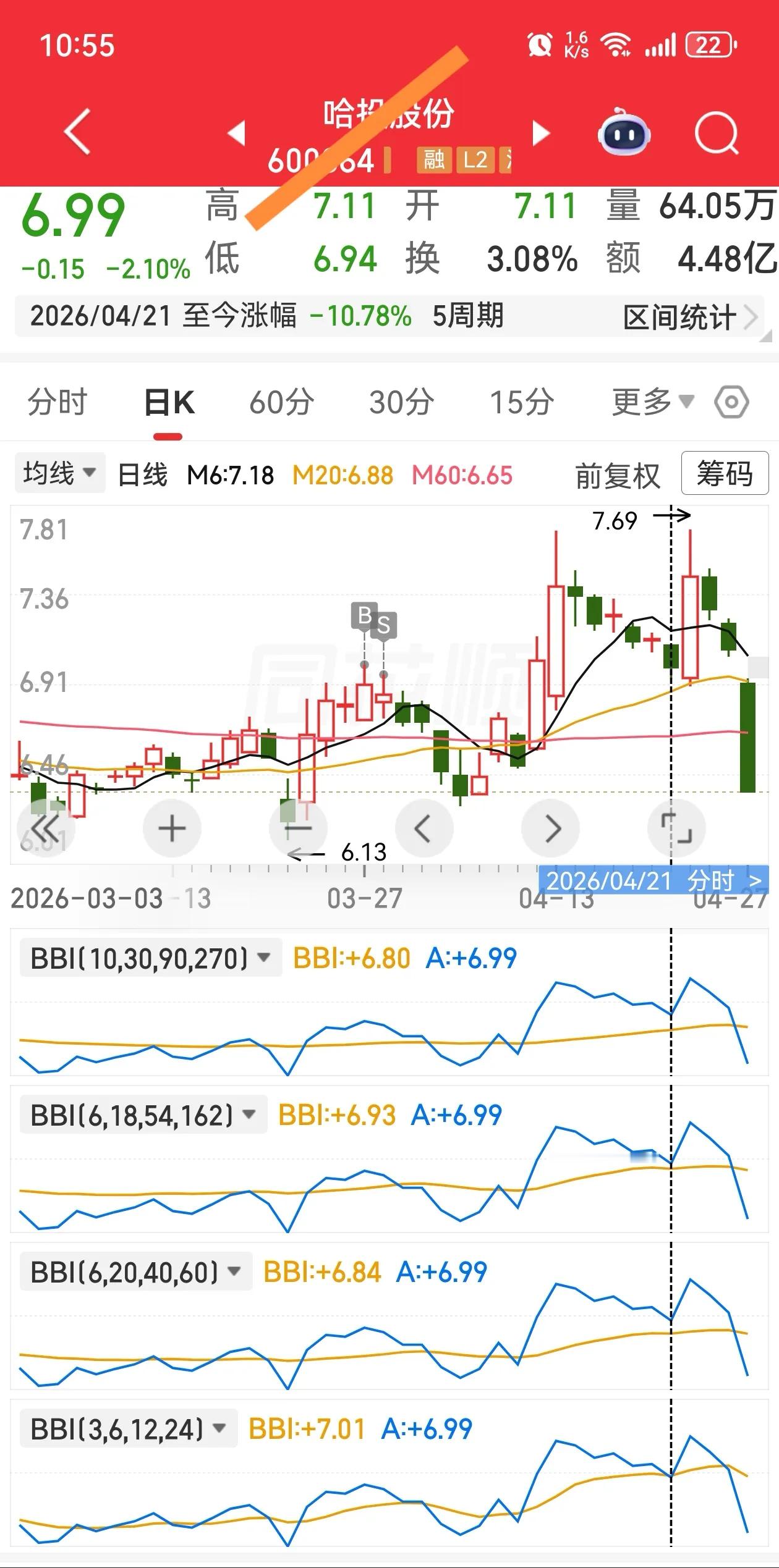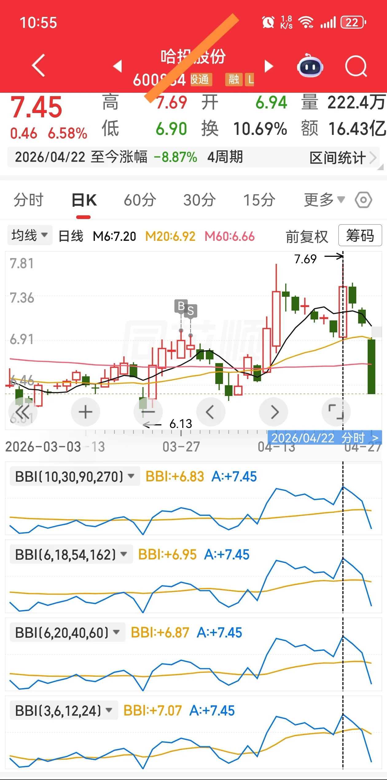 以贴图为例,该股在4月21日虽然有三条BBI线呈多头排列,但仍有一条短期BBI线处于空头状态,不符合条件。到了4月22日,虽然短期BBI线转为多头,但股价仅站稳2日,便在4月24日再次形成死叉,始终没有形成有效买点。如果不守纪律贸然买入,最终,该股在4月27日出现大跌。