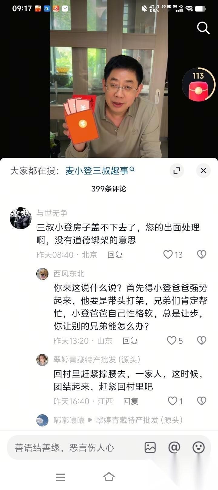 麦小登家这次房子不能动工,是大爷去找了后也说不通,是小登在北京和爸爸看病期间,大爷去盯着也不行,大家都去小登三叔家,甚至跑到她姑妈的留言区里疯狂摇人。 为啥? 按粉丝以前的经验,碰到这种过不去的坎儿,总得有个能镇得住场子的长辈出面。 结果倒好。 平时说话最有分量的亲戚,这回愣是连个影儿都见不着。 这事儿透着古怪。 在乡下盖新房,邻居跳出来找茬拦着,太常见了。 这时候想赔着笑脸讲道理? 没用。 这种纠纷,拼的从来不是谁占理。 拼的是谁家拳头大,谁家脾气冲。 早年间,我们村有对兄弟。 哥俩平时互相看不顺眼,连亲妈在中间劝都没用。 老大是个硬茬子,谁都不敢惹。老二呢,没个一男半女,平时在村里总低着头做人。 有一年,老二要翻修院子。 刚挖开地基,隔壁邻居就死活不让动,老二急得满嘴起泡都没招。 结果怎么着? 平时十天半个月都不跟弟弟说句话的老大,直接抄起家伙杀到了现场。 两眼一瞪,当场撂下一句狠话:“明天直接进料,我看谁敢拦着!” 就这一嗓子。 那帮找茬的邻居灰溜溜地全散了。 乡下熟人社会里的生存法则,其实很残酷。 老祖宗说“打虎亲兄弟,上阵父子兵”,真不是随便编的。 自家人关上门,打出狗脑子那也是自家的事。 但要是外人想骑到脖子上拉屎,整个家族立马就得抱团,枪口必须一致对外。 在农村这种看重家族实力的地方,跟不讲理的人装斯文,等于自找欺负。 你得把护短的劲儿亮出来,把全家人的拳头攥紧了。 那些躲在暗处掂量软硬的人,才不敢随便伸手捏你的软柿子。 对此,你怎么看?
