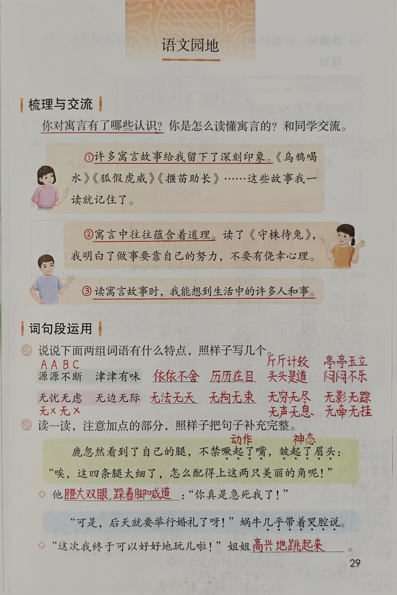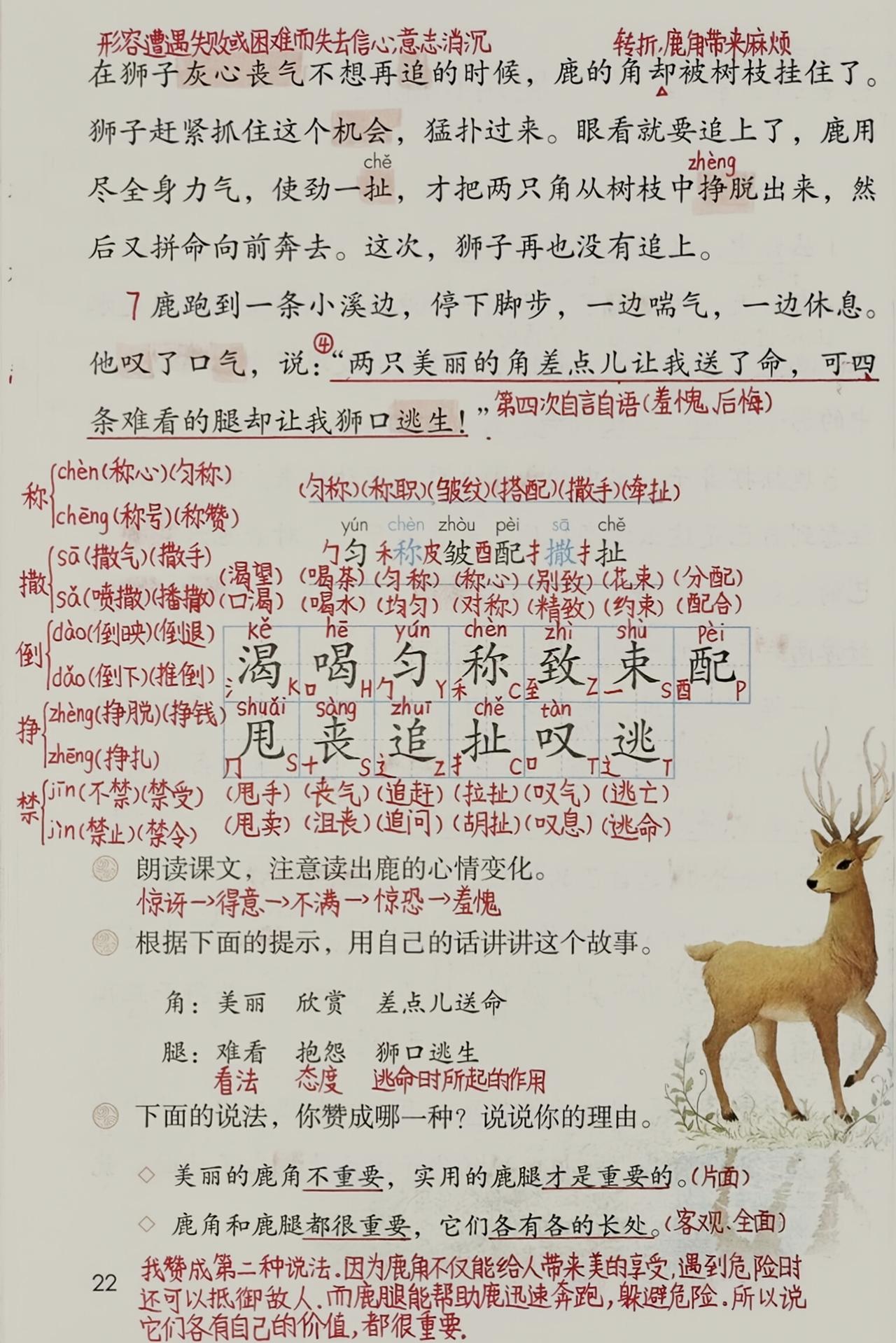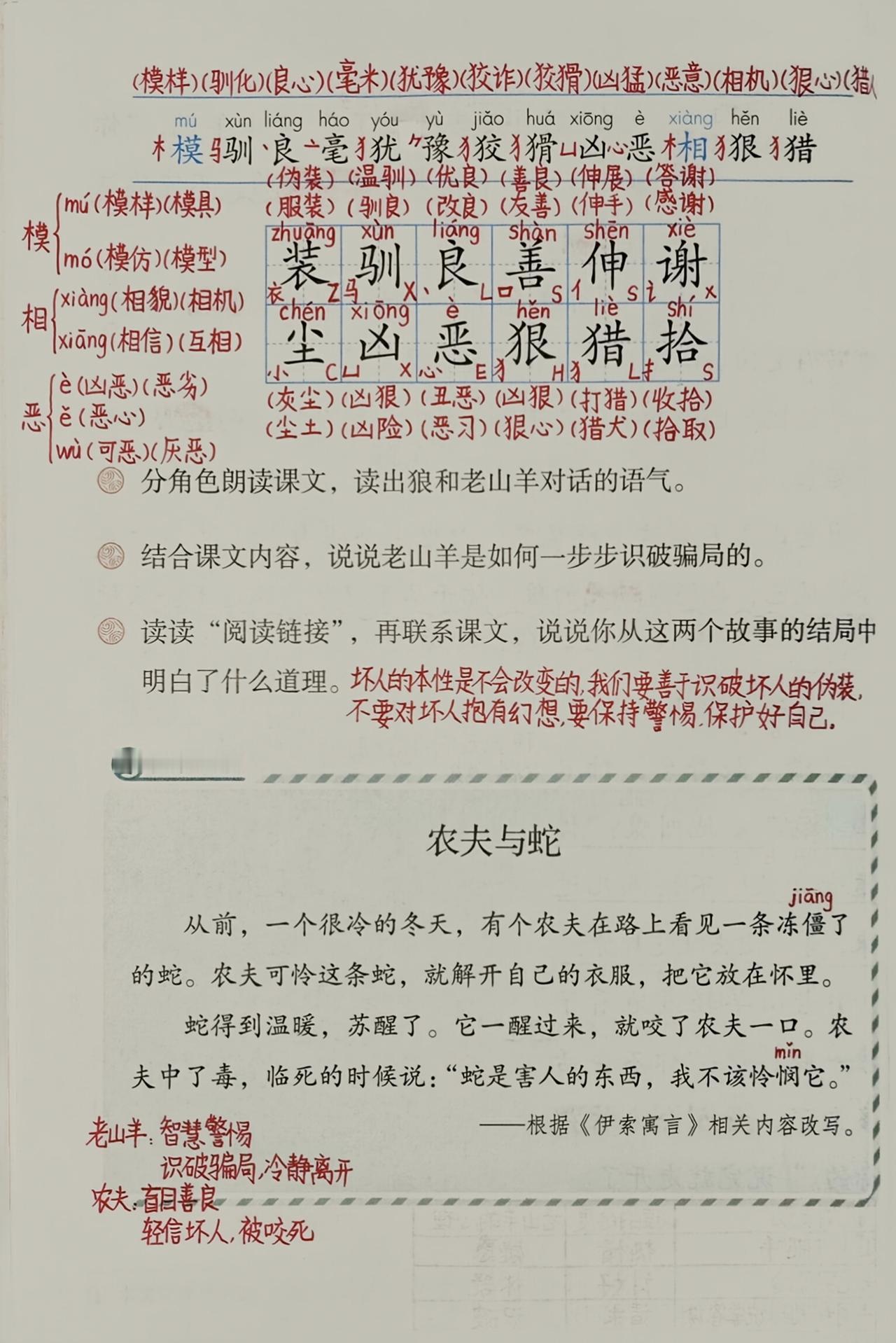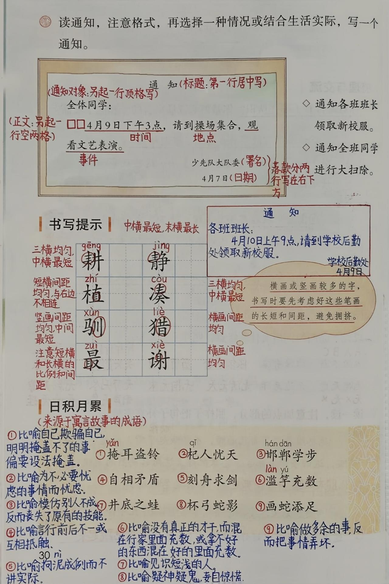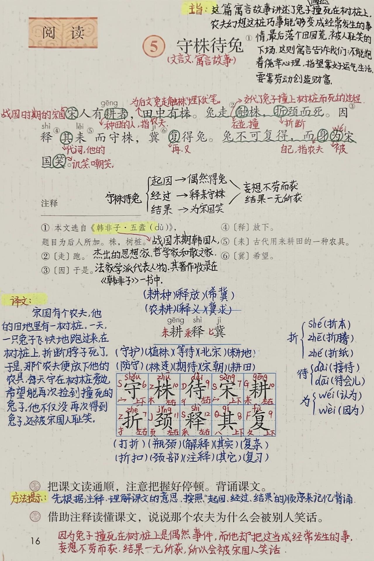 三年级下册语文,第二单元《守株待兔》《会摇尾巴的狼》《鹿角和鹿腿》《语文园地二》课堂笔记,收藏备用