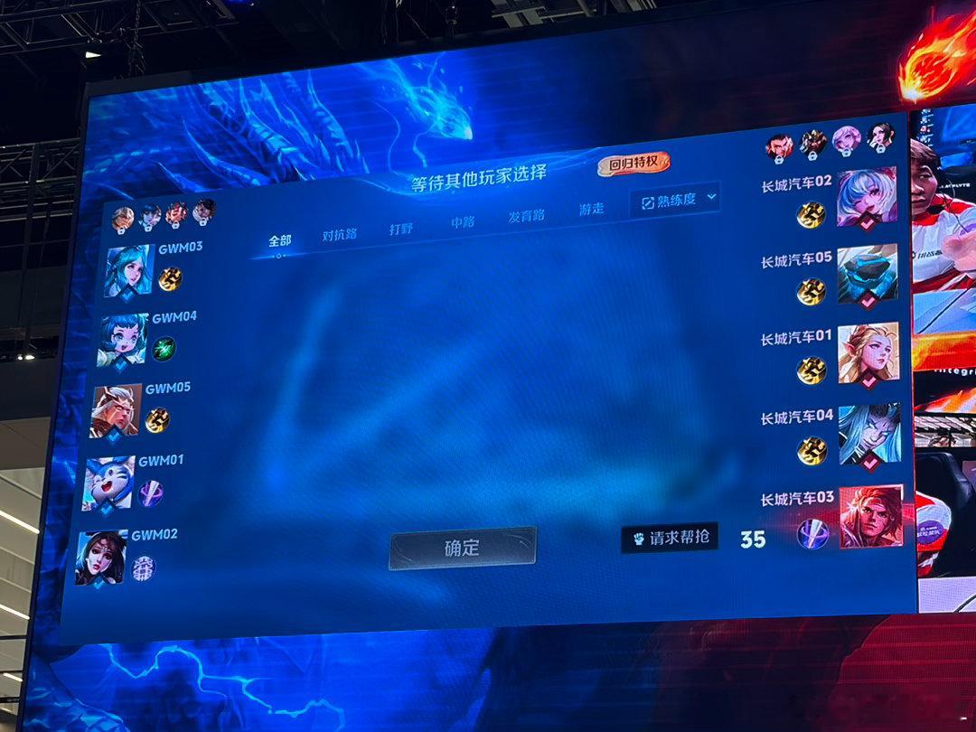长城展台搞了个王者荣耀挑战赛。第一局,坦克战队VS欧拉战队。