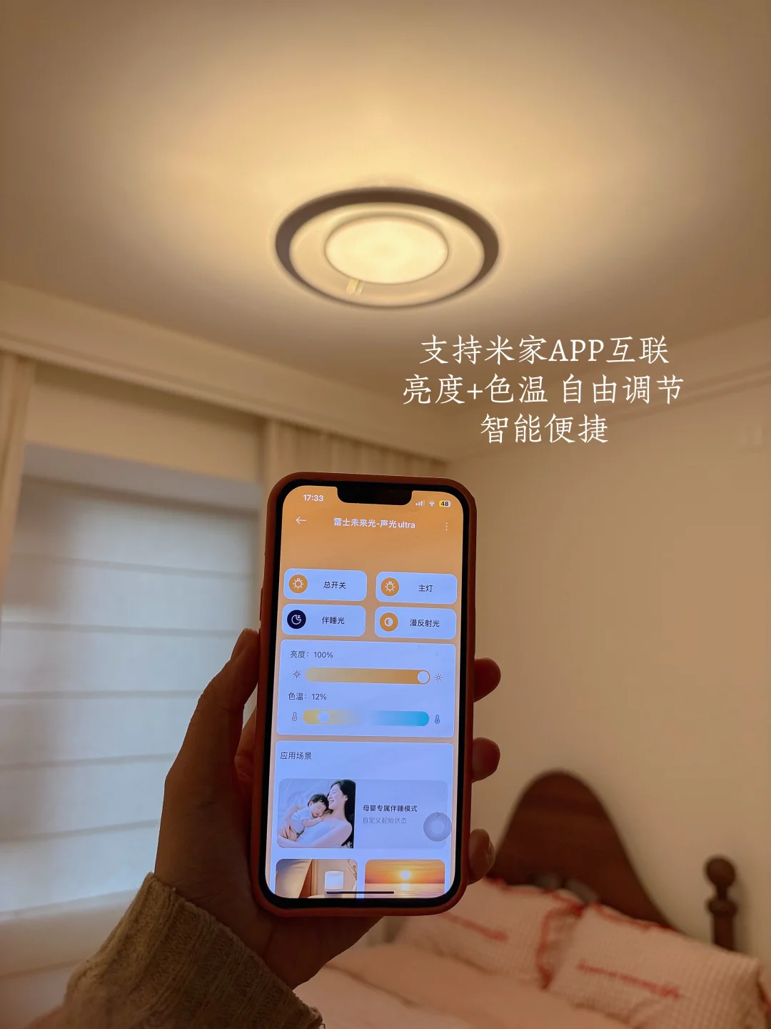 还能连米家APP、语音智能操控,窝在被窝里就能调光调色、开关灯具,夜里起夜也不用摸黑下床,懒人幸福感直接拉满。