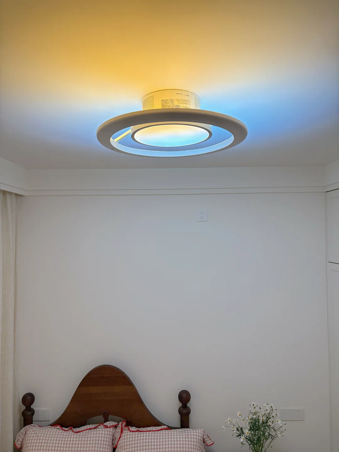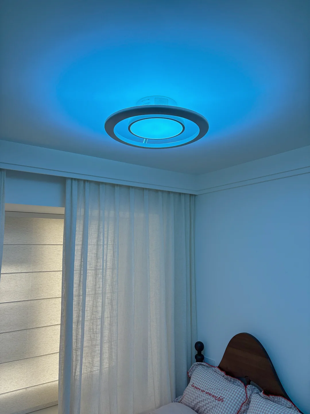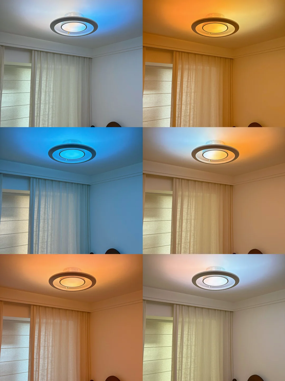 白天开清亮白光,她看书画画清清楚楚;傍晚暖黄光一开,整个屋子软乎乎的,氛围感直接拉满;还有像日落、蓝天一样的氛围彩光,她超爱追着光影玩,说自己的房间里有天空和晚霞~
