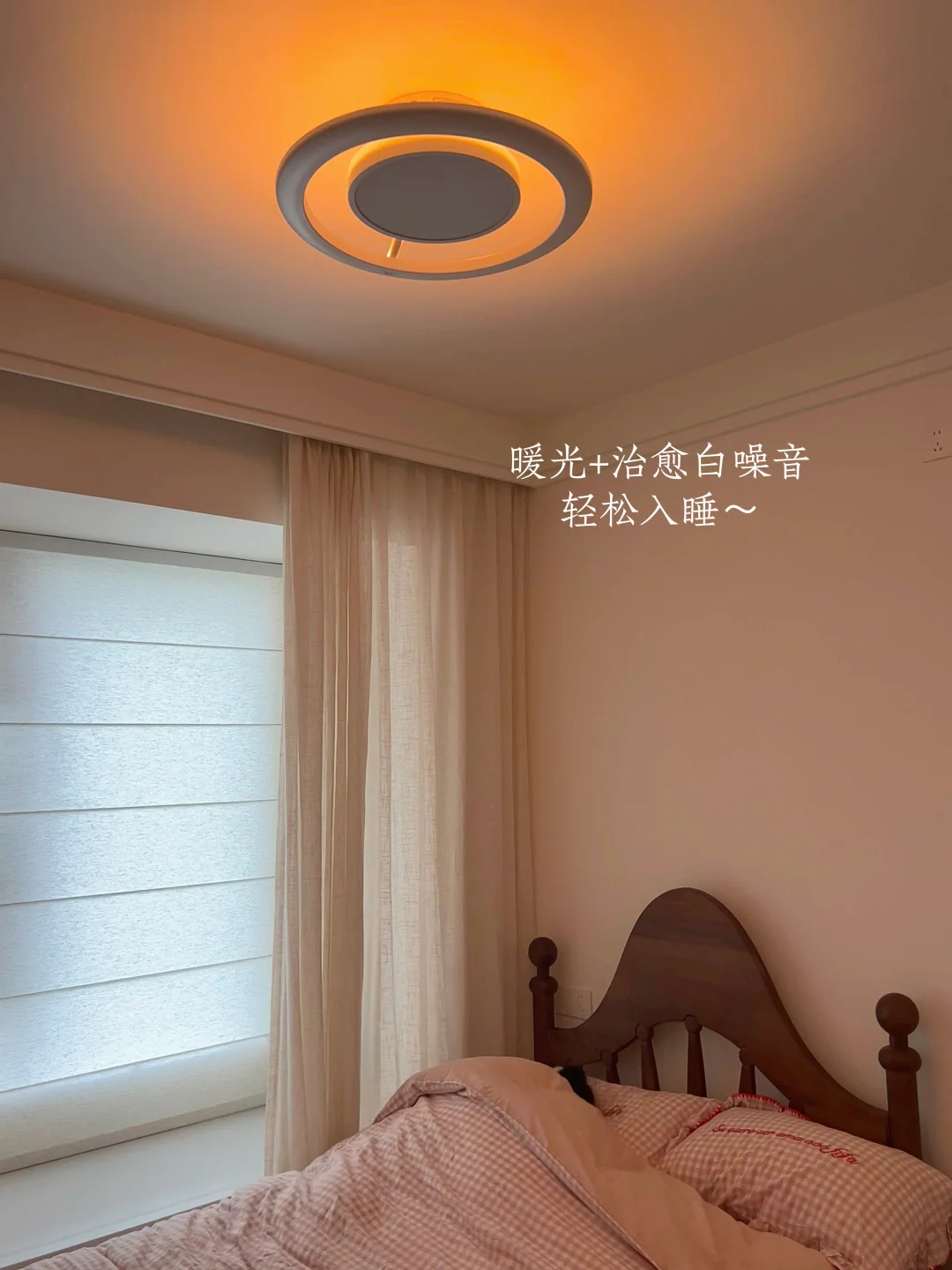 现在睡前一键切助眠模式,暖融融的灯光慢慢变暗变柔,轻柔的伴睡音乐缓缓响起,小小的房间一下子就变得安安静静、温温柔柔。