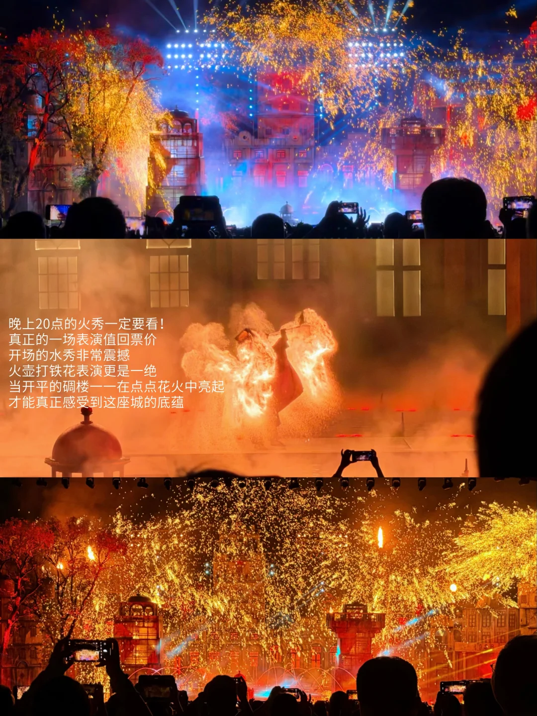 晚上的火秀一定要看!真正的一场表演值回票价,在我看过的打铁花表演中称得上是一绝!