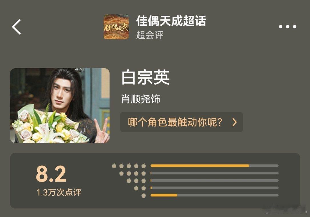 但是我看他这个角色超话评论两极分化,说明关注他的人远超角色本身的戏份权重——要么是有人专门盯着他,要么是他的话题度本身就高到能带动评分,能拿到1.3万次点评,本身就说明大家愿意为他的角色停留、打分,这对一个戏份不多的配角来说,已经是超高的关注度了。