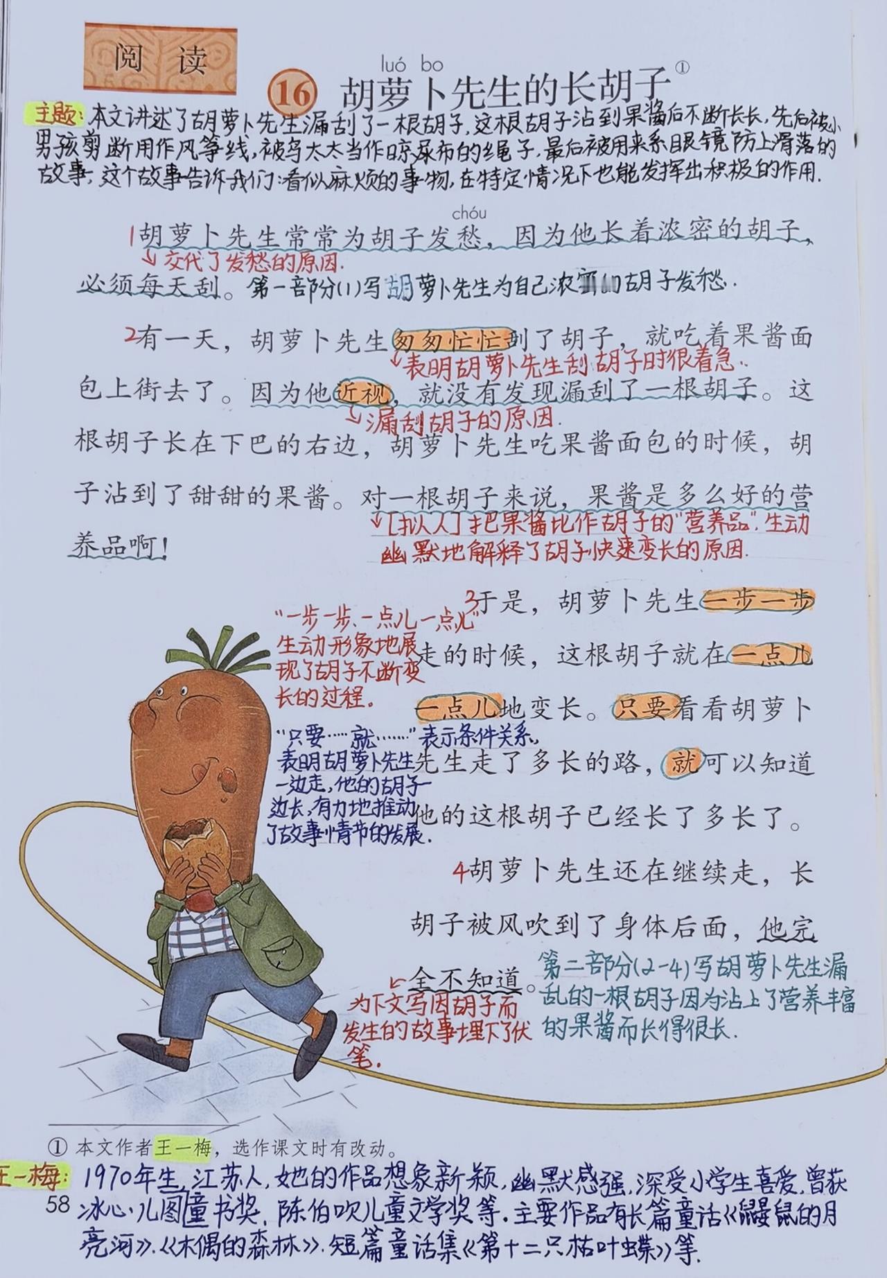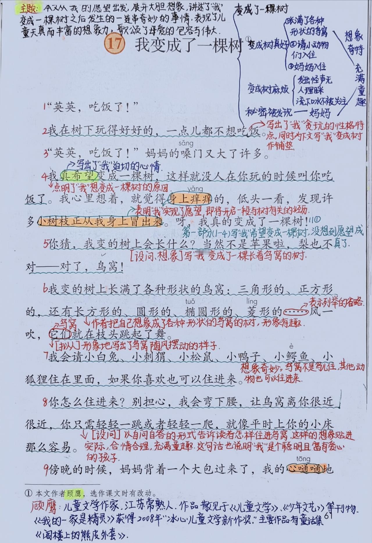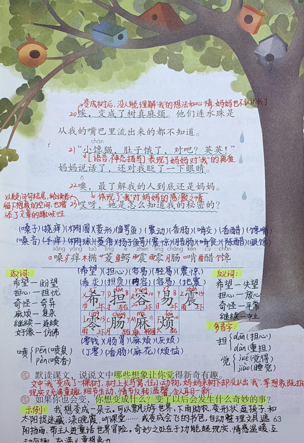三年级下册语文,第五单元《胡萝卜先生的长胡子》《我变成了一棵树》《习作例文》课堂笔记,收藏备用