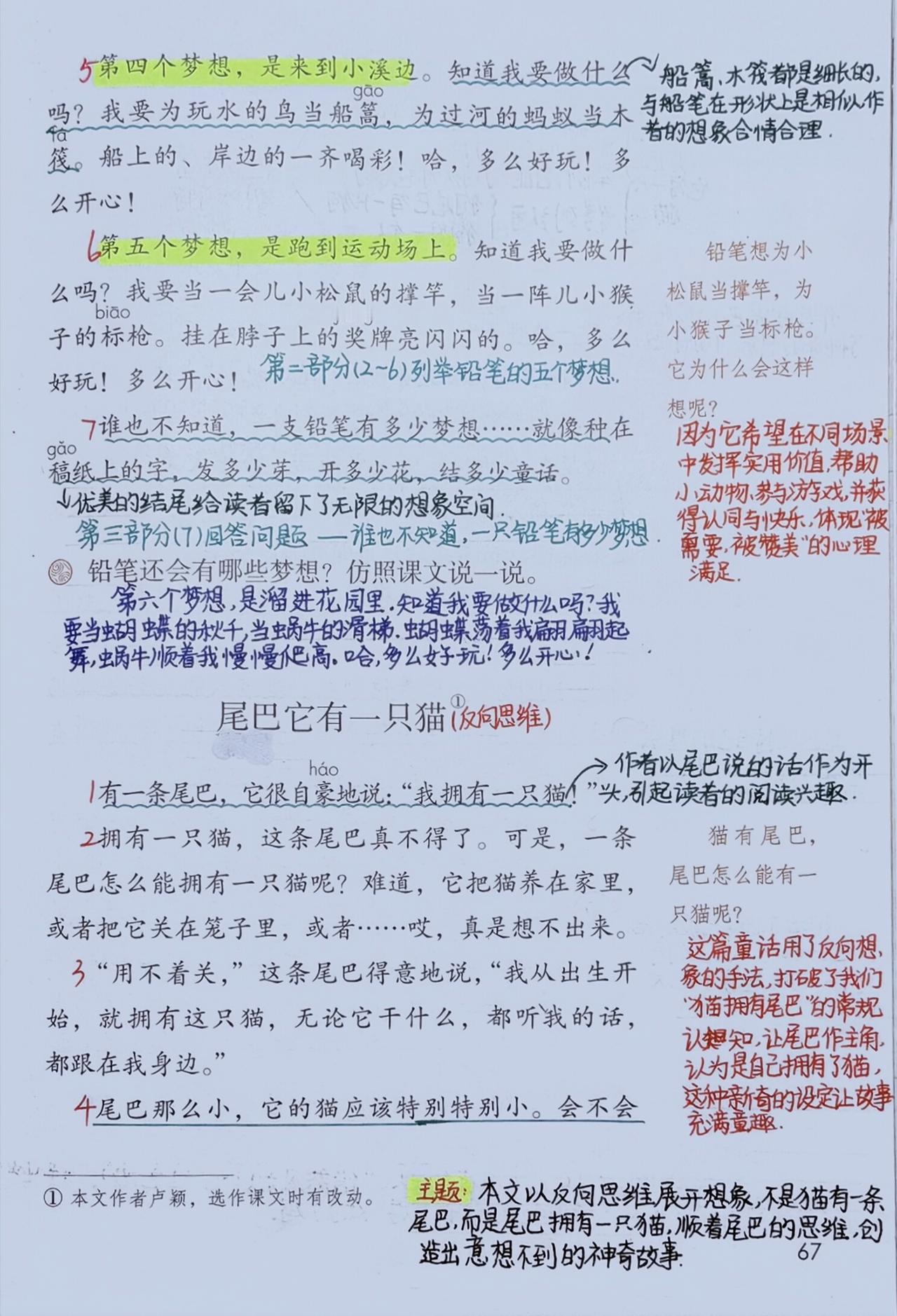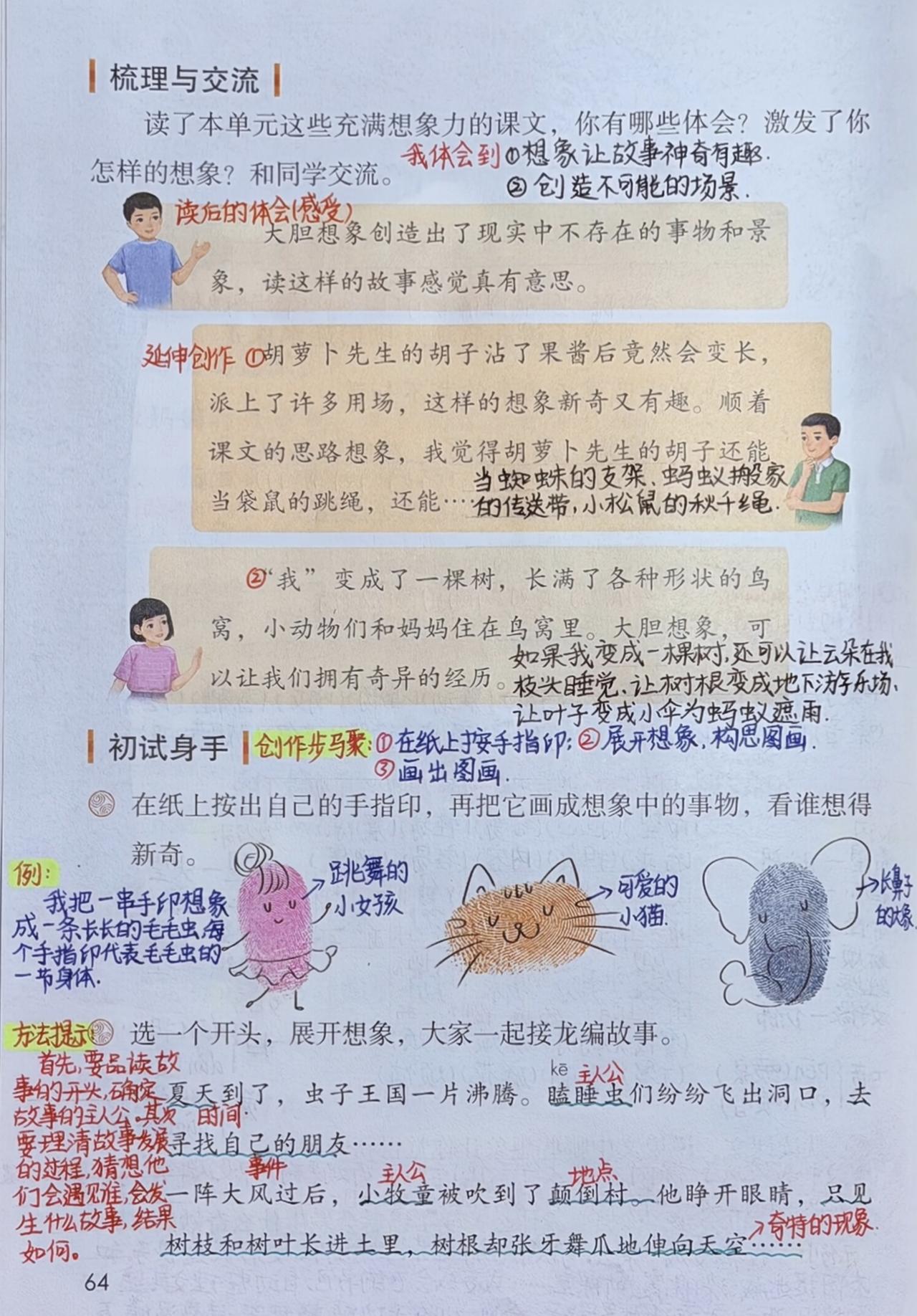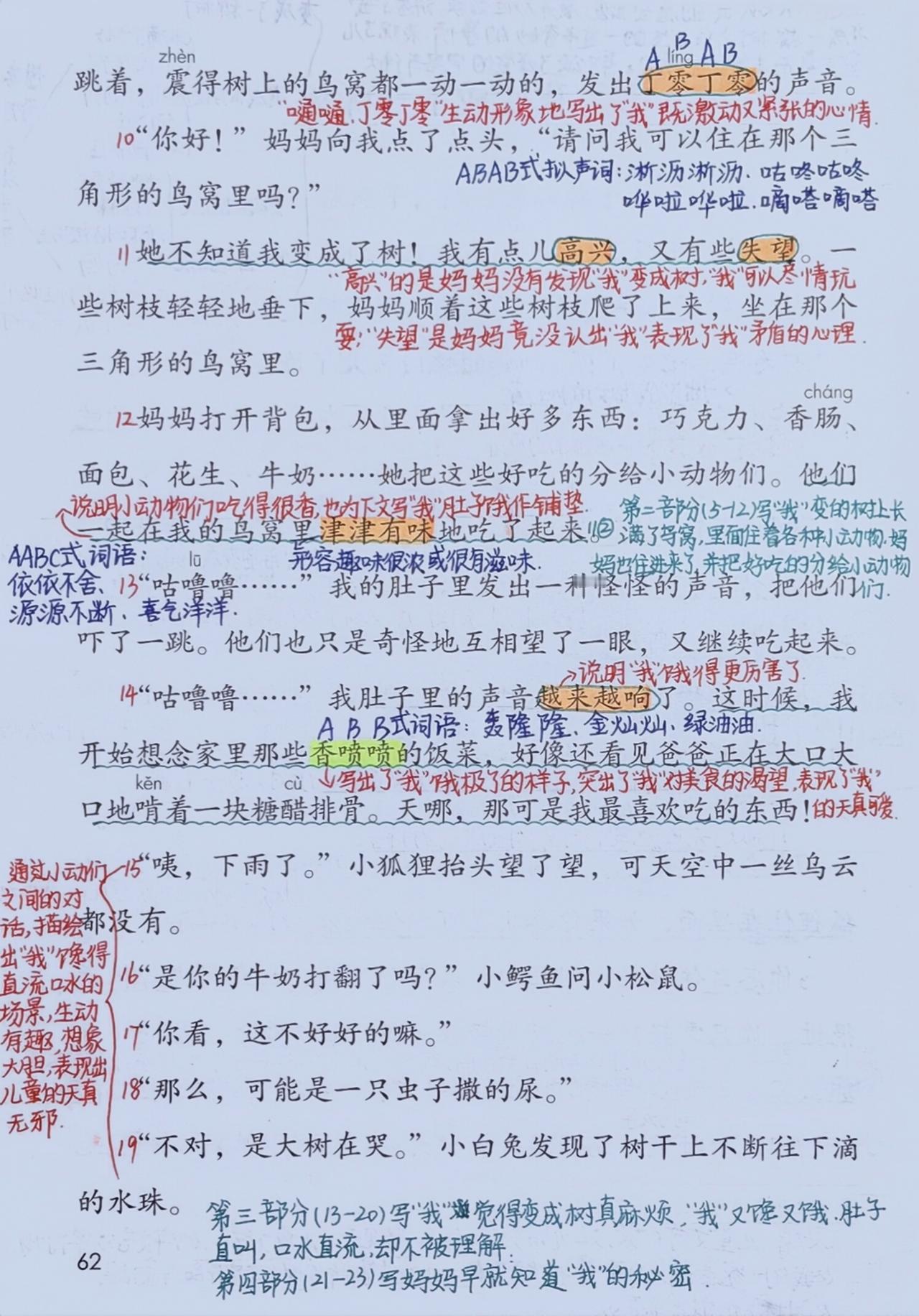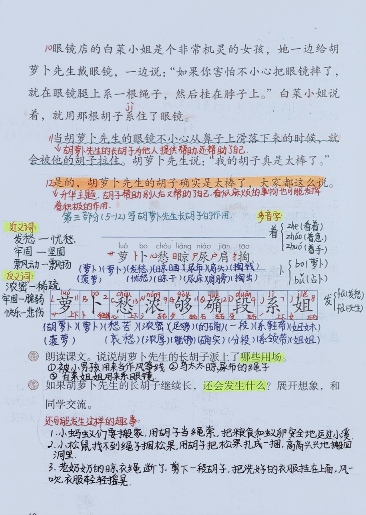 三年级下册语文,第五单元《胡萝卜先生的长胡子》《我变成了一棵树》《习作例文》课堂笔记,收藏备用