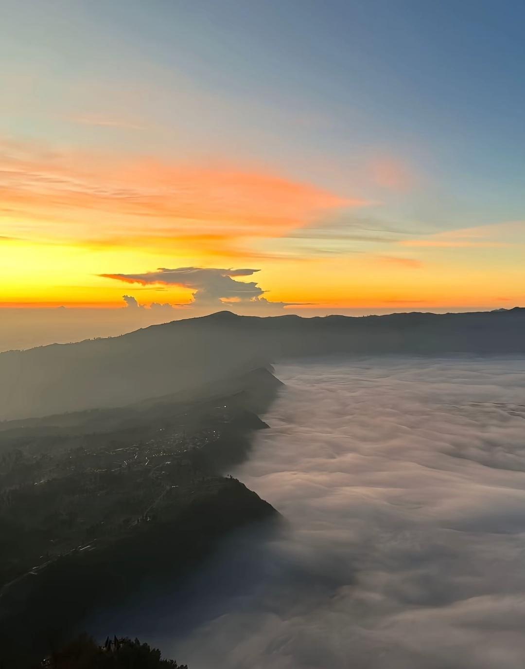 谁懂啊!在布罗莫火山随手拍的每一张都像电影截图✨ 凌晨爬上山巅,等一场日出把云海染成橘子汽水色,远处火山轻吐白烟,风里全是自由的味道。不用刻意找角度,随便一站,利落的黑穿搭就和壮阔山海完美适配,连光影都在主动帮忙出片。 原来最动人的风景,从来都藏在说走就走的路上~你们手机里最绝的随手拍是什么样?来评论区晒晒吧!
