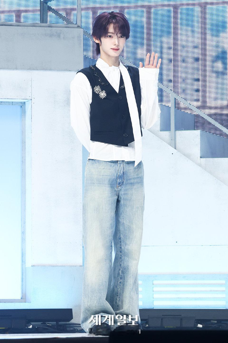 漂了头发穿的粉粉嫩嫩回国参加音乐节的徐明浩🥺
