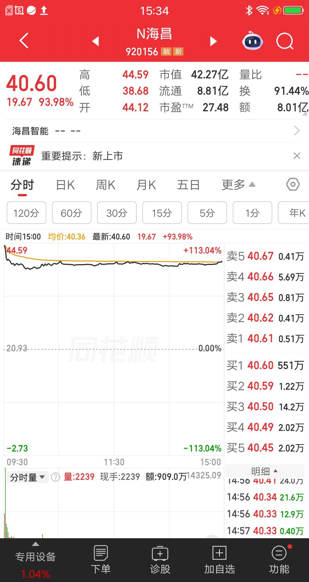 一位北京的股民,今天梭哈了海昌智能,40元左右买了156万块。他非常满意,感觉自己买的很便宜,收盘就发帖炫耀“才涨了不到一倍,目标再涨两倍💪”。 他觉得公司的基本面是可以的,属于专用设备板块,主营汽车线束智能制造装备。去年营收10.64亿,今年一季报营收3.9亿。而且公司有一些头部大客户,比亚迪、立讯精密和长城汽车。这些都说明,公司在细分赛道很有竞争力。 最重要的是股价涨幅,他觉得其他新股都涨了好多倍,相比之下海昌智能才一倍,应该还有很大的上涨空间。 有人吐槽说,这家公司就是一般的制造业公司而已,顶多算是绩优股加成长股,和科技概念不沾边。而且是北交所的,门槛贼高,散户都没资格参与,所以涨的才少。 他回复说,看好的是公司未来,又不做短线交易,股价未来能到一百元呢。 反正各有各的道理吧,都要为自己的认知买单。