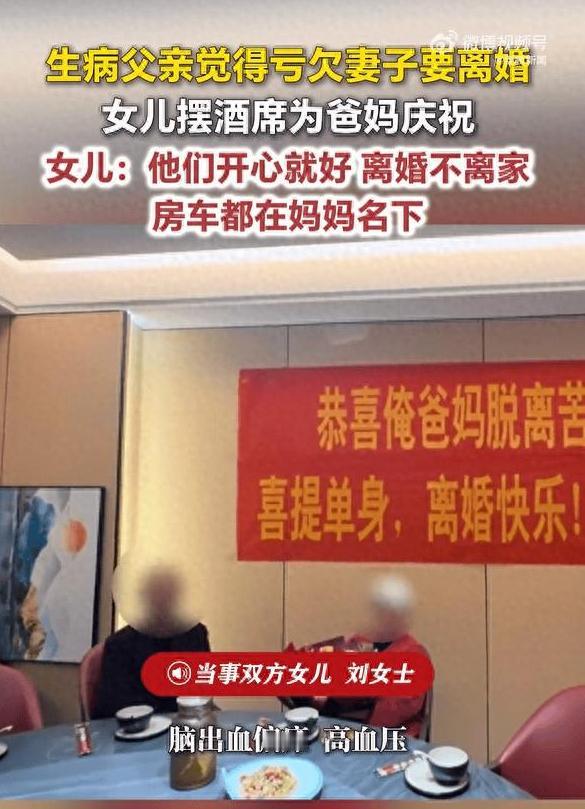 河南一男子因病偏瘫,觉得亏欠妻子主动离婚,女儿摆酒席庆祝:他们开心就好,离婚不离家,母亲继续照顾父亲,房车等全部财产都在母亲名下。 刘女士的父母,原本是街坊邻里间随处可见的普通夫妻,一辈子勤勤恳恳,心思都放在家庭和孩子身上。 年轻时,两人省吃俭用,一起打拼,一点点攒下家业,买了属于自己的房子和车子,也把刘女士抚养成人。 原本以为终于能卸下重担,两人满心盼着能好好享受往后的清闲日子,可一场毫无预兆的意外,却猝不及防地打破了这份平静。 刘女士的父亲突发脑出血,情况危急,被紧急送往医院抢救,万幸的是,经过全力救治,他的性命得以保住,但却留下了严重的偏瘫后遗症。 从这以后,刘女士的母亲便毅然放下了自己所有的事情,把所有精力都投入到照料丈夫的日常里。 日复一日,年复一年,这一守就是好几年,从未间断过一天,也从未有过一句抱怨。 那些朝夕相伴的日子里,母亲的生活重心彻底转移到了丈夫身上,每一天的时间,都被各种琐碎的照料事宜占得满满当当,没有一丝属于自己的空闲。 刘女士每次回家,总能看到母亲忙碌的身影,曾经乌黑的头发,不知不觉间添了许多白发,眼角的皱纹也越来越深。 可母亲从来不会在女儿面前流露疲惫,总是笑着说自己没事,但刘女士心里清楚,那种日复一日的操劳,是常人难以想象的。 刘女士曾想过请护工帮忙分担,却被母亲拒绝,在母亲心里,别人照顾始终不如自己贴心,只有守在丈夫身边,她才能真正放心。 与此同时,刘女士的父亲看着妻子为了自己,放弃了原本的生活,放弃了和老朋友相聚的机会,放弃了自己的爱好,把所有的时间和精力都耗在自己身上,看着妻子日渐憔悴的模样,他的心里十分愧疚。 他也曾努力尝试自己活动,想减轻妻子的负担,可偏瘫的身体始终不争气,有时候反而让妻子更加担心,也让自己的愧疚感愈发强烈。 他想起两人年轻时的约定,说好一起安享晚年,可现在,这个约定不仅无法实现,自己还要成为妻子一生的负担。 所以在他心里,自己如今就是这个家的包袱,不仅让妻子日夜操劳、不得清闲,还拖累了整个家,让一家人都跟着为自己费心。 在愧疚与自责的日夜煎熬中,父亲挣扎了很久,最终咬了咬牙,下定了一个决心——他要让妻子彻底“解脱”。 后来,父亲主动提出了离婚,他不想再看着妻子为自己耗尽心力,他想让妻子能卸下重担,过自己想过的生活。 面对父亲的提议,母亲第一时间就拒绝了,在她心里,夫妻本就该同甘共苦,丈夫生病,她悉心照料是理所当然,而且她觉得丈夫从来都不是负担,更不会因为丈夫偏瘫就丢下他不管。 两人没有争吵,只有父亲一次次的劝说和母亲一次次的坚持。 最终,两人决定采用离婚不离家的相处模式,关于离婚后家里的财产,父亲没有丝毫犹豫,主动提出将家里的房子、车子以及所有存款,全部登记在母亲名下。 母亲一开始不愿意接受,觉得这样太委屈丈夫,可父亲态度坚决,母亲拗不过他,最终还是答应了。 离婚后的日子,并没有改变太多,两人依旧生活在同一个屋檐下,母亲依然像从前一样,悉心照料着父亲的饮食起居,闲暇时,两人会一起坐在沙发上看电视,聊一聊家里的琐事。 看着父母越来越好的状态,刘女士心里十分欣慰,为了让他们能更舒心,也为了给生活添一份欢喜,刘女士悄悄着手,精心筹备了一场酒席。 酒席上,刘女士特意向父母表达自己的心意——只要父母能够舒心自在地过日子,就是自己最大的心愿。 (信息来源:2026-04-20洪观新闻《河南一男子因病偏瘫,觉得亏欠妻子主动离婚,女儿摆酒席庆祝:他们开心就好,离婚不离家,母亲继续照顾父亲,房车等全部财产都在母亲名下》)