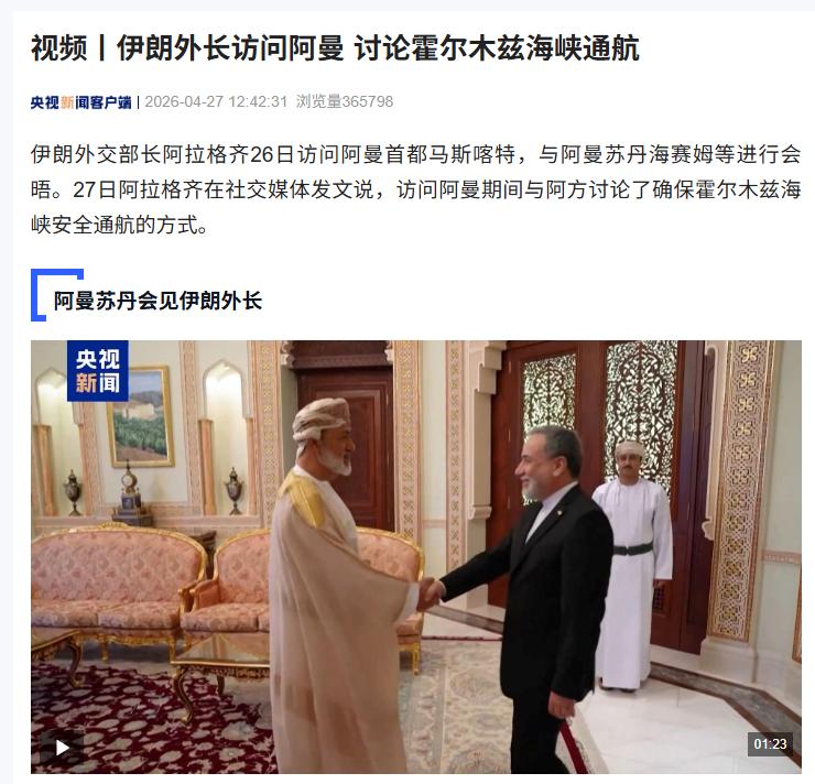 伊朗外长传来新消息。 2026年4月27日,伊朗外长阿拉格齐突然在社交媒体上放话了。他说自己跑去阿曼,跟对方认真谈了怎么确保霍尔木兹海峡安全通航。 为什么选阿曼?这地方在中东是个出了名的“和事佬”,跟伊朗、沙特、美国各方关系都还过得去,说话有人听。阿拉格齐跑去跟海赛姆苏丹谈,意思很明白:咱沿岸国家自己的事,自己关起门来商量,别让外人掺和。 他见面时直接挑明了,美国在地区的军事存在只会导致动荡和分裂,地区国家得在“不受美国干预”的情况下,自己搞一套集体安全机制。这话是说给谁听的,大家心知肚明。 按原计划,26日见了阿曼苏丹,下一站就该飞俄罗斯了。可偏偏傍晚掉头又回了巴基斯坦伊斯兰堡,待了几个小时深夜再走。巴基斯坦资深记者阿布萨尔·阿拉姆·海德尔凌晨就在网上爆料,说“转折”就发生在阿曼的会晤里。 阿曼方面提了个关键建议:不管搞什么霍尔木兹海峡的新安全机制,都得把沙特阿拉伯拉进来。这一下子就把棋局变大了。阿拉格齐立刻折返,估计就是通过巴基斯坦这个中间人,赶紧把这份“必须带上沙特”的新条件传递出去。 果然,沙特通讯社随后就证实,他们的外交大臣费萨尔26日当天就跟阿拉格齐通了电话。你看,一条社交媒体的动态,背后是几个小时内外交路线的急速调整和关键电话的沟通,这节奏快得让外界根本反应不过来。 他选择在社交媒体上亲自公布,而不是通过外交部发个正经声明,这本身就是一种策略。等于是绕开了传统媒体的过滤和解读,直接把“我们沿岸国家在认真商量怎么管好自家门口”这个信息,塞到了全球网友和观察家的眼皮子底下。 这种“直播外交”的做法,打破了外界总觉得中东外交行动迟缓、充满预告的刻板印象。阿曼外交大臣巴德尔也在自己账号上跟进,说进行了“良好讨论”,并承认对国际社会负有共同责任。一来一往,话题的热度和关注度立刻就上去了。 那么,伊朗为什么这么着急要谈霍尔木兹海峡?这条窄窄的海峡,每天承载着全球约三分之一的海运石油贸易,说是世界经济的咽喉也不为过。它的安全,直接连着国际油价和供应链的稳定。 伊朗和阿曼作为两个主要的沿岸国,坐下来谈怎么保障通行安全,名义上是“让所有邻国及全世界获益”,实际上是在争夺这件事的主导权和话语权。过去这片水域的安全,很大程度上被与美国结盟的海湾国家以及美国海军第五舰队影响着。 伊朗现在拉上阿曼,还想把沙特甚至卡塔尔都拽进来,目的就是要把美国的影响力挤出去,建立一个由地区国家自己说了算的新规矩。 所以,阿拉格齐这趟看似突然的低调出行,根本不是什么心血来潮。这是一套组合拳:先找最合适的调解人(阿曼)定下调子(沿岸国家自主),再根据现场情况(阿曼提议拉沙特入伙)立刻调整策略,通过中间人(巴基斯坦)传递信息,同时用社交媒体把核心信息广而告之,抢占舆论阵地。 整个过程高效、灵活,目标明确——在美国影响力相对收缩的窗口期,尽快搭建一个排除外部大国的地区安全协商框架,把霍尔木兹海峡这个命脉的管控权,尽可能抓在自己和周边邻居手里。至于能不能成,还得看沙特等关键方接不接招,但伊朗这步棋,已经实实在在地走出去了。