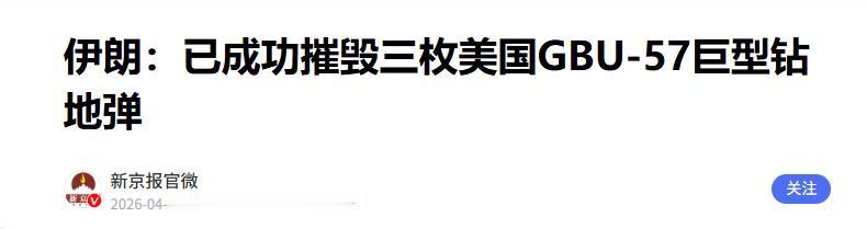 深夜重大喜讯!伊朗特种部队行动成功,美伊和谈迎来新的转机 4月26日这天,中东在停火的平静中爆出了一个让五角大楼坐立难安的消息——伊朗革命卫队特种部队在赞詹省的战场清理行动中,成功处置了美军空袭后遗留的4枚GBU-57巨型钻地弹。 这可不是普通的炸弹,是美军压箱底的GBU-57A/B巨型钻地弹,被称为"地堡终结者"。美国当初研发这玩意儿,就是想用来对付那些藏在地下深处的硬骨头目标,比如加固的军事设施或者核设施之类的,它能穿透60米厚的加固混凝土。 伊朗方面说得很清楚,他们的特种部队在停火期间的未爆弹药清理行动中,一口气摧毁了三枚,还在赞詹省找到了一枚美军空袭后遗留的未爆弹,也给安全拆除并移交相关部门。四枚炸弹,就这样被专业处置,全程零伤亡。 先说说这炸弹有多"金贵"。懂行的都知道,这东西是美军武器库里的奢侈品,不是随便就能扔的。 它重达13.6吨,长得就很吓人,个头大得惊人,仅能由B-2隐身轰炸机携带,每架飞机也只能带2枚,需从12,000米高空投放。单枚造价超过1600万美元,是美军现役威力最大的常规钻地武器。 美国人当初造它,就是想靠着这玩意儿的钻地能力,能穿透厚厚的混凝土或者岩石,把地下工事一锅端。 可这次呢?这几枚宝贝疙瘩在空袭后未能成功引爆,被遗留在伊朗境内,伊朗特种部队在清理战场时发现并处置了它们。这就好比一个人挥着一把镶金的大锤,想砸穿一面墙,结果墙没砸着,锤子反而掉在地上,被人捡起来妥善处理了。 最有意思的是,伊朗人干这事的时候,那叫一个从容不迫。特种部队出动,排爆专家上场,一步步操作,全程零伤亡,把这些危险的大家伙一个个搞定。这充分展示了伊朗特种部队和排爆专家的专业素养与技术水平。 你想想,美国一直把这些高科技武器当成自己的杀手锏,动不动就拿出来吓唬人。这次倒好,自己的王牌武器未爆弹被人家完整缴获,还拆得明明白白,这脸可就丢大了。 更让美国难受的是,这些被拆除的炸弹里,确实藏着不少美军的先进技术,伊朗革命卫队已表示将把完整回收的炸弹移交技术研究单位,可能用于逆向工程分析。 这事儿背后,其实藏着不少门道。美伊双方对空袭效果存在不同评估,伊朗称核设施仅部分受损且可修复,美方则宣称达成战略目标。他们总说自己的精确打击有多厉害,可现在看来,确实存在未爆炸的情况,这值得美军反思。 伊朗的防御和反制能力,确实超出了很多人的预料。能在停火期间找到这些没爆炸的炸弹,还能安全拆除,这可不是一般国家能做到的。这说明伊朗的军事素质和技术水平,都有两把刷子。 还有一点很关键,这事儿给美国的盟友们也提了个醒。美国的武器虽然贵,但不一定总能达到预期效果;美国的承诺虽然好听,但不一定靠谱。跟着美国混,说不定哪天自己就成了试验品。 伊朗这次的拆弹行动,就像是给美国霸权一记响亮的耳光。它告诉世界,不管你武器多先进,价格多昂贵,只要师出无名,只要违背了国际正义,最终都难逃失败的命运。 而且,这事儿也让我们看到,单边主义和霸权主义越来越行不通了。美国总想当世界警察,到处指手画脚,可现在越来越多的国家开始站起来说不了。伊朗就是一个典型的例子,面对美国的军事威胁,他们没有退缩,而是用自己的方式进行了反击。 有人可能会担心,这事儿会不会让美伊关系更加紧张?其实,美伊关系早就够紧张了。但这次事件也让美国不得不重新评估伊朗的实力,说不定反而能让他们冷静下来,好好想想怎么用和平的方式解决问题,而不是一味地动武。 从另一个角度看,这事儿也给全球的军事发展提了个醒。武器再先进,也得能用才行。与其花大价钱研发那些华而不实的玩意儿,不如好好想想怎么提升自己的综合实力,怎么用和平的方式维护自己的利益。 最后,我想说的是,这个世界需要的是对话和合作,而不是对抗和冲突。美国如果还抱着冷战思维不放,总想用武力解决问题,最终只会搬起石头砸自己的脚。而像伊朗这样敢于维护自己主权和尊严的国家,值得我们尊重。
