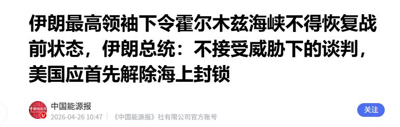 伊朗下死命令:霍尔木兹海峡彻底变天,免费通行时代终结,背后是主战派全面掌权的铁证 4月26日这天,中东的天空又炸了个响雷。伊朗官方通讯社塔斯尼姆放出消息,伊斯兰议会副议长尼克扎德公开透露,伊朗最高领袖穆杰塔巴・哈梅内伊已明确下令:霍尔木兹海峡不得恢复战前状态。 这话听着有点绕,但翻译过来就一个意思——想再像以前那样,大摇大摆免费从这条海峡过,门儿都没有了。 可能有人要问,一条海峡而已,至于这么大动干戈吗?那你可就太天真了。这条海峡可不是普通的水道,它是波斯湾的咽喉,全球海运石油总量的四分之一以上、液化天然气运输量的约五分之一经此运往世界各地。 以前大家都默认这是条国际通道,只要遵守规则就能过,现在伊朗直接掀了桌子,说这地方得按我的规矩来。 穆杰塔巴的命令一出来,伊朗议会那边立刻就动起来了。3月30日已由议会国家安全委员会通过的霍尔木兹海峡通行收费法案,即将提交全体会议审议。这份法案的内容,简直就是给过往船只立了个"通关生死簿"。 以后不管哪国的船,想过海峡都得先递申请,必须获得伊朗最高国家安全委员会或武装部队总参谋部的许可。这就好比你开车过收费站,不光要交钱,还得先让相关主管部门点头才行。 钱是必须交的。伊朗说了,要参照土耳其博斯普鲁斯海峡和埃及苏伊士运河的模式,收取通行费和服务费。而且特别强调,优先用伊朗本国货币里亚尔支付,也可使用人民币或加密货币结算。 这招挺有意思,既赚了钱,又能变相推动本国货币国际化,一举两得。通行费收入的30%将用于加强武装力量,70%将用于改善人民生活。 最狠的还在后面。以色列的船只,直接被拉黑,永远禁止通行,连商量的余地都没有。那些曾经伤害过伊朗的国家,比如搞过制裁、发动过袭击的,想过海峡也行,先把赔偿协议签了,把欠伊朗的账结清再说。不然的话,对不起,此路不通。 消息一出,外界都在猜,伊朗怎么突然就这么硬气了?答案其实很简单,伊朗内部的权力格局已经发生显著变化。穆杰塔巴上台这一个多月,伊朗强硬派势力影响力大幅上升。 以前的伊朗,虽然对美以态度强硬,但多少还有点转圜的余地。现在不一样了,革命卫队这些强硬派势力,在国家安全和军事事务中发挥核心作用。穆杰塔巴本人就是个超级强硬派,承袭了他父亲的路线,加上之前的冲突让他身负重伤,对美以的态度只会更硬。 这事儿其实早有苗头。3月30日,伊朗议会国家安全委员会就已经通过了霍尔木兹海峡通行收费法案,确立了武装部队的主导地位,当时就明确禁止美国、以色列和对伊朗制裁的国家船只通过,并计划与阿曼合作制定相关法律框架。 穆杰塔巴这个命令,不过是把之前的试探变成了正式官宣。有人可能会担心,伊朗这么干,会不会引发新的冲突?毕竟美国和以色列肯定不会善罢甘休。但站在中国的立场看,这事儿没那么简单。 伊朗这么做,本质上是在维护自己的国家安全和地区利益。长期以来,美国和以色列在中东搞霸权,动不动就对伊朗进行制裁和军事威胁。 伊朗现在只不过是用自己的方式,把主动权握在手里。只不过,伊朗的做法,其实是在打破西方主导的国际航运规则。以前都是西方国家说了算,现在伊朗站出来说,我们也要有话语权。 这对建立更加公平合理的国际秩序,未必是件坏事。中国一直主张多边主义,反对单边霸权,从这个角度看,伊朗的举动,某种程度上也是对现有不合理秩序的一种挑战。 说到底,穆杰塔巴的这个命令,不是一时冲动,而是伊朗深思熟虑后的战略选择。强硬派掌权后,伊朗正在用更加强硬的姿态,应对外部的压力和挑战。霍尔木兹海峡的免费通行时代已经结束,一个新的秩序正在形成。